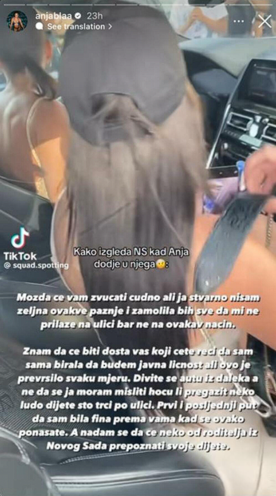 Snimak na kojem se vidi kako Anja ulazi u auto i viče na decu - "ne diraj staklo" - ubrzo je osvanuo na društvenim mrežama, zbog čega je Anja sada reagovala na Instagramu i poručila: "Ne prilazite mi".