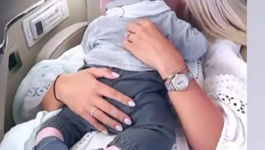 Naslednik uživa u maminom zagrljaju dok se voze privatnim avionom, a sudeći po njenom osmehu, majčinstvo joj itekako prija.