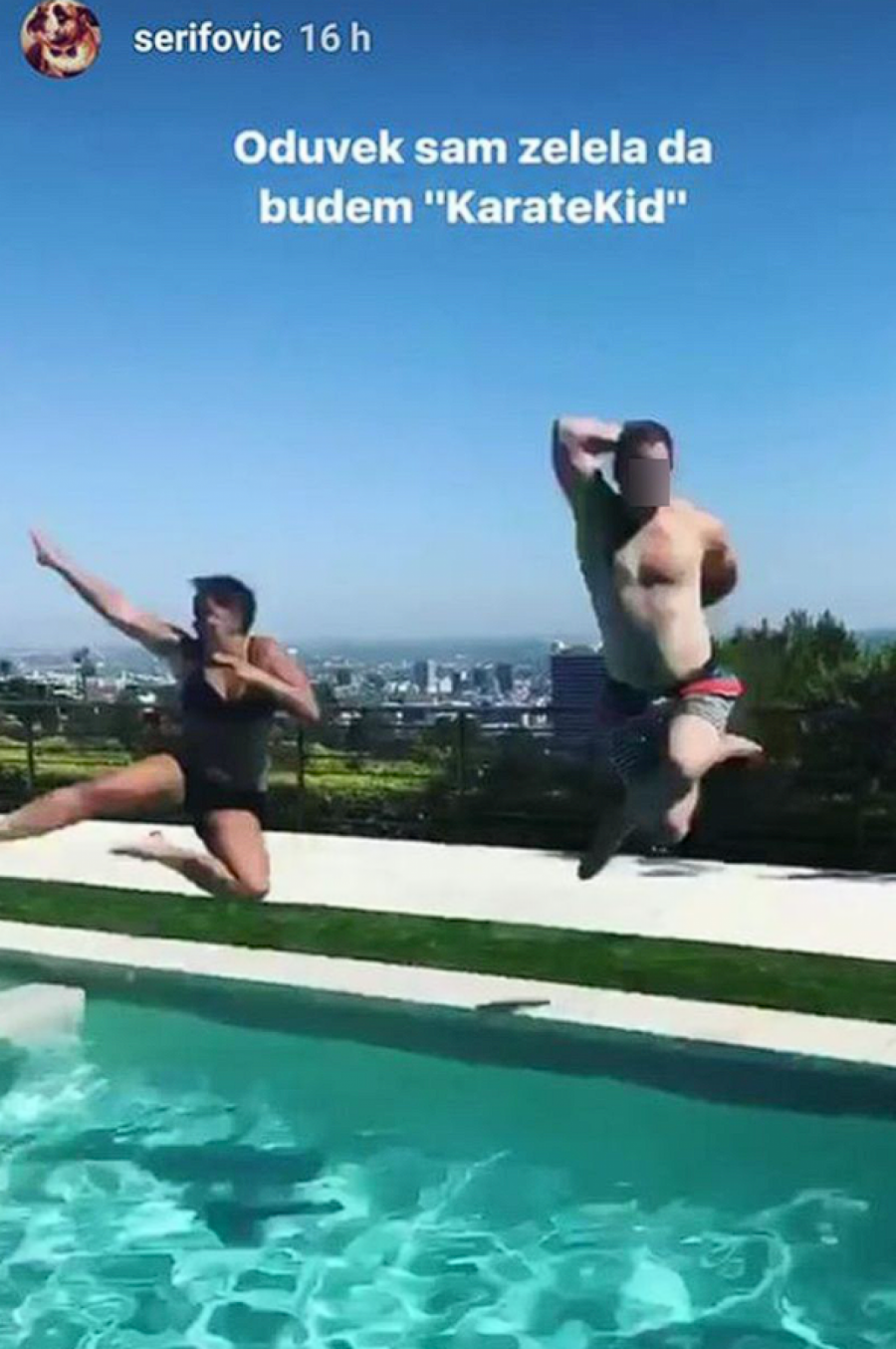 Marija se tada, pre nekoliko godina, sjajno zabavljala u Los Anđelesu, pa je objavila kadrove kako skače u bazen kao Karate Kid.
