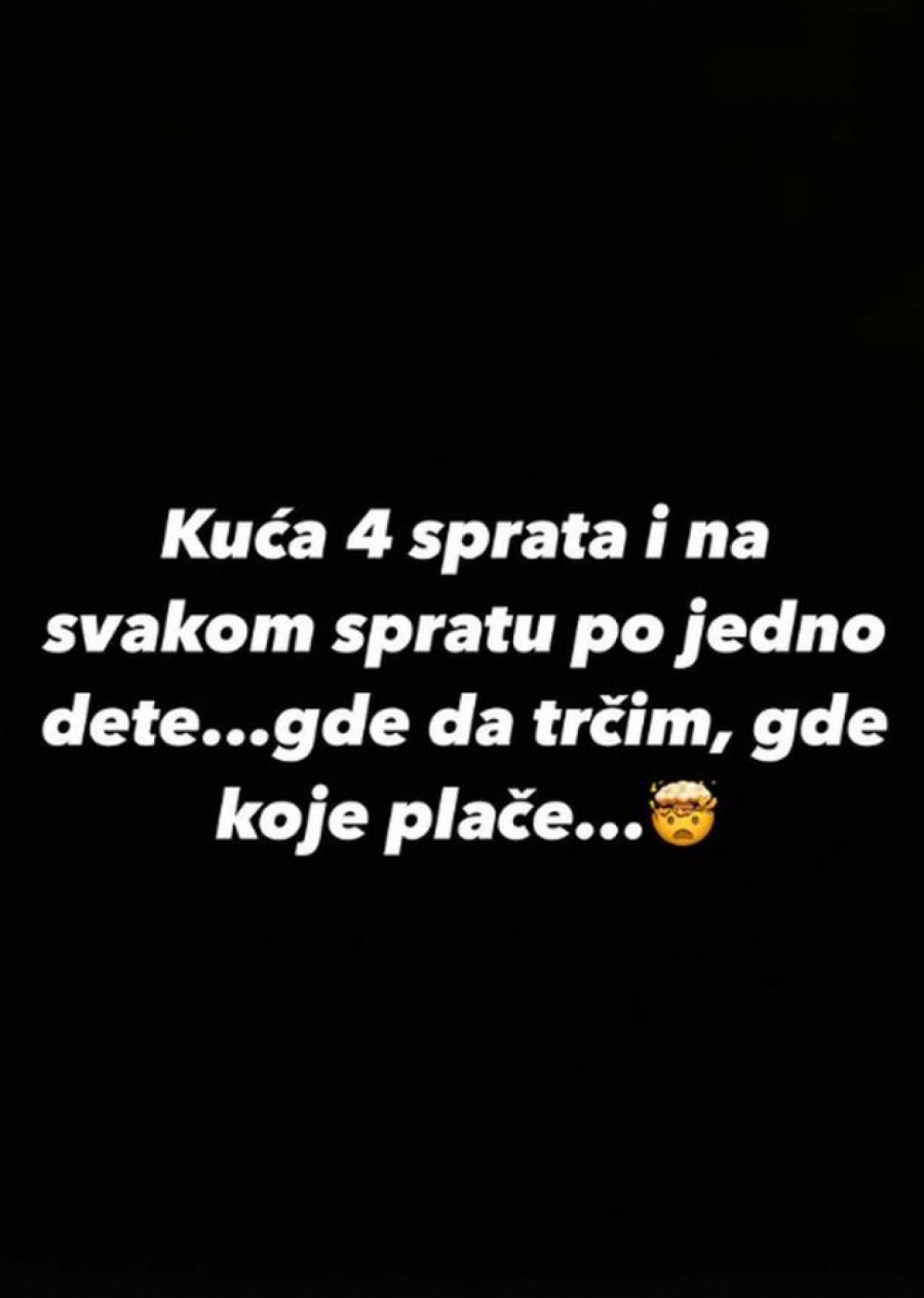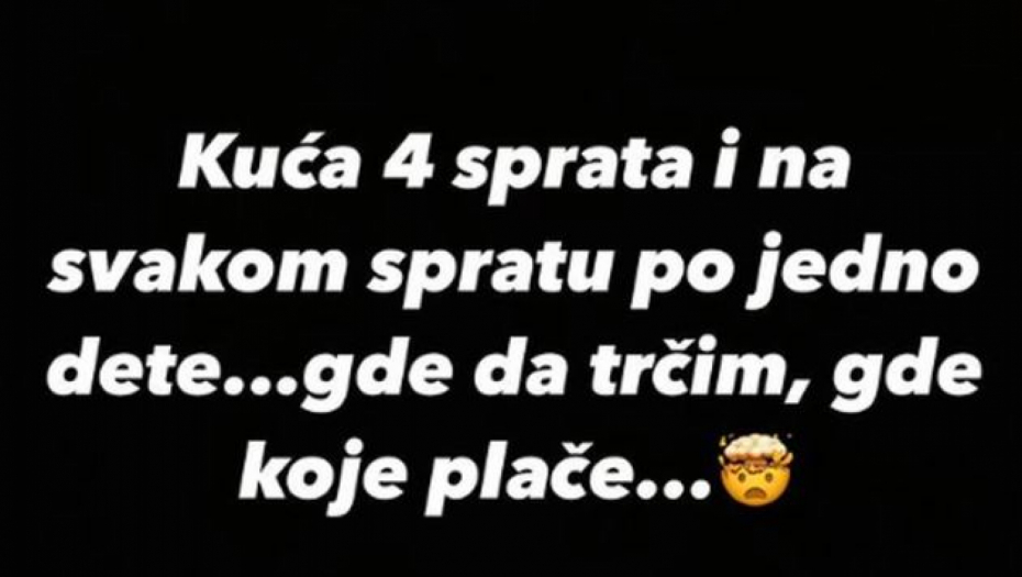 - Kuća četiri sprata i na svakom spratu po jedno dete... Gde da trčim, gde koje plače - napisala je Jelena Radanović.