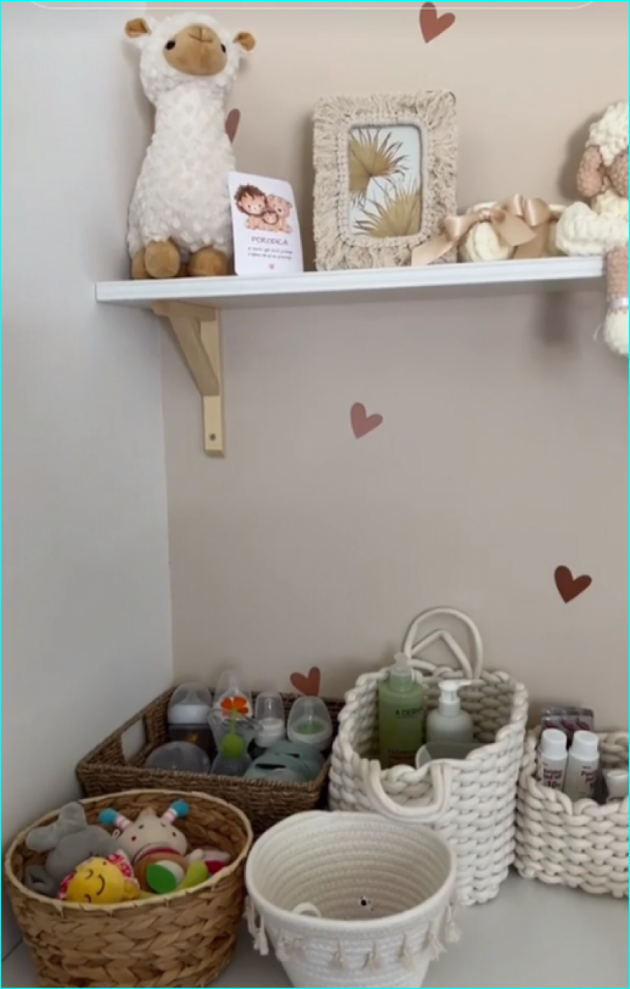 Prelepe pastelne boje ukrašavale su sobu, plišane igračke nisu izostale, drvena kolevka, kao ni srca na zidu ali i ime njihove mezimice.