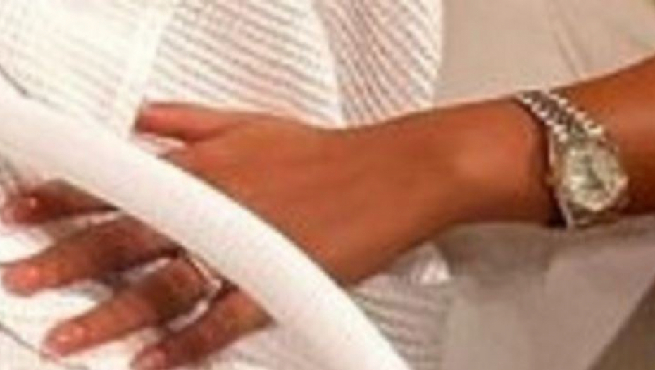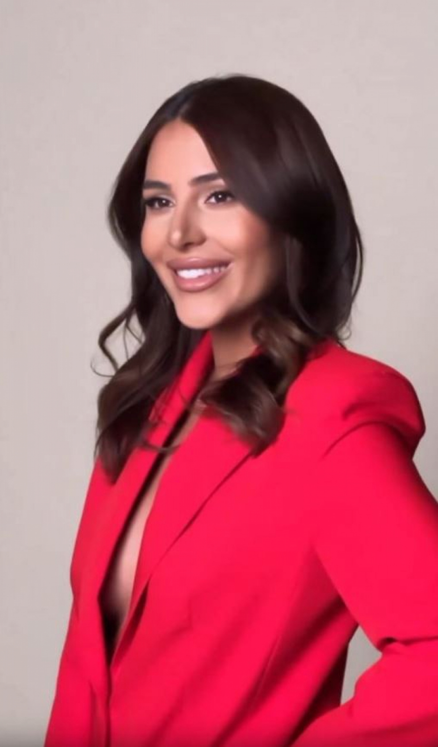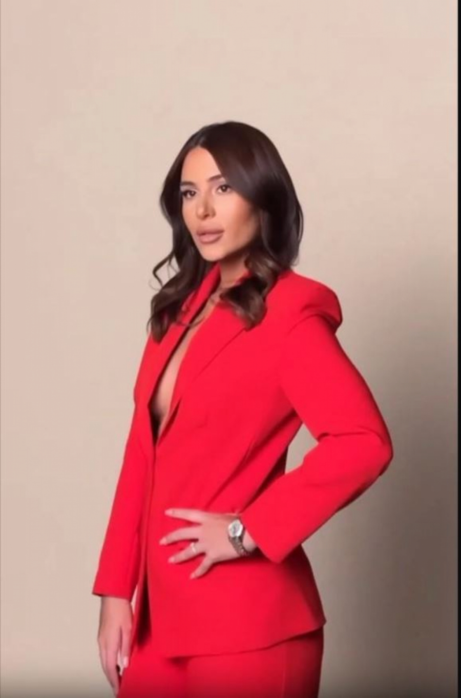 Dok je pozirala u "bezobraznom" stajlingu, u crvenim pantalonama i sakou, ispod kog nije nosila ništa, na ruci mlade zvezde zasijao je dijamant.