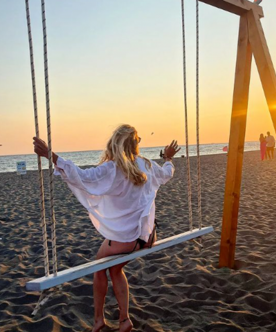 Naime, Tijana je pozirala na ljuljašci, na sebi je imala crni dvodelni kupaći kostim, a preko je obukla belu košulju.