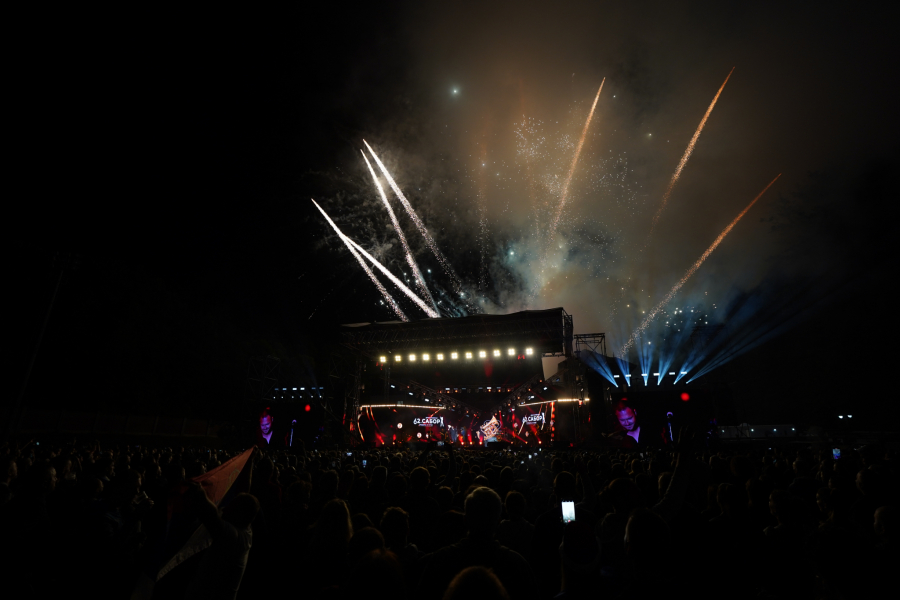 Stadion je sinoć bio prepun, a sad već prepoznatljiva spektakularna audio-vizuelna produkcija Skymusic-a upotpunila je fantastične nastupe majstora trube Dejana Petrovića i njegovog Big Band-a, ovogodišnjih finalista, kao i nacionalnog ansambla narodnih igara i pesama sa Kosova i Metohije „Venac“, koji su samo nastavak dva fenomenalna koncerta Ace Pejovića i Aleksandre Prijović u Predsaborskim danima, sa zabeleženom rekordnom posetom od nekoliko desetina hiljada posetilaca.