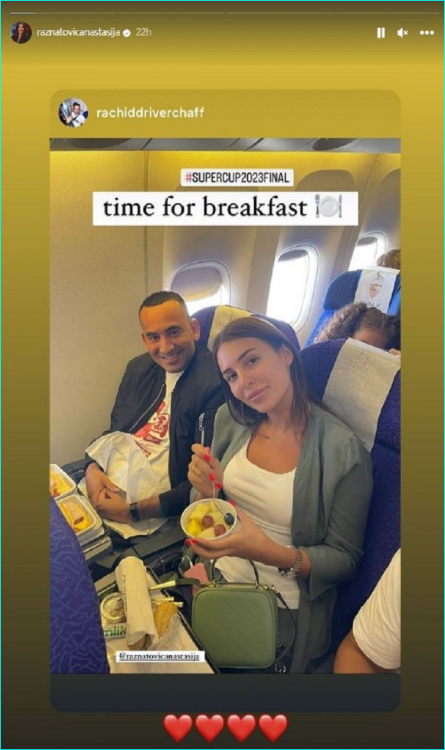 Čak i dok on radi, Anastasija je uz njega, pa je tako otputovala i u Atinu kako bi ga pratila na finalu Super Kupa koji se održava u tom gradu.