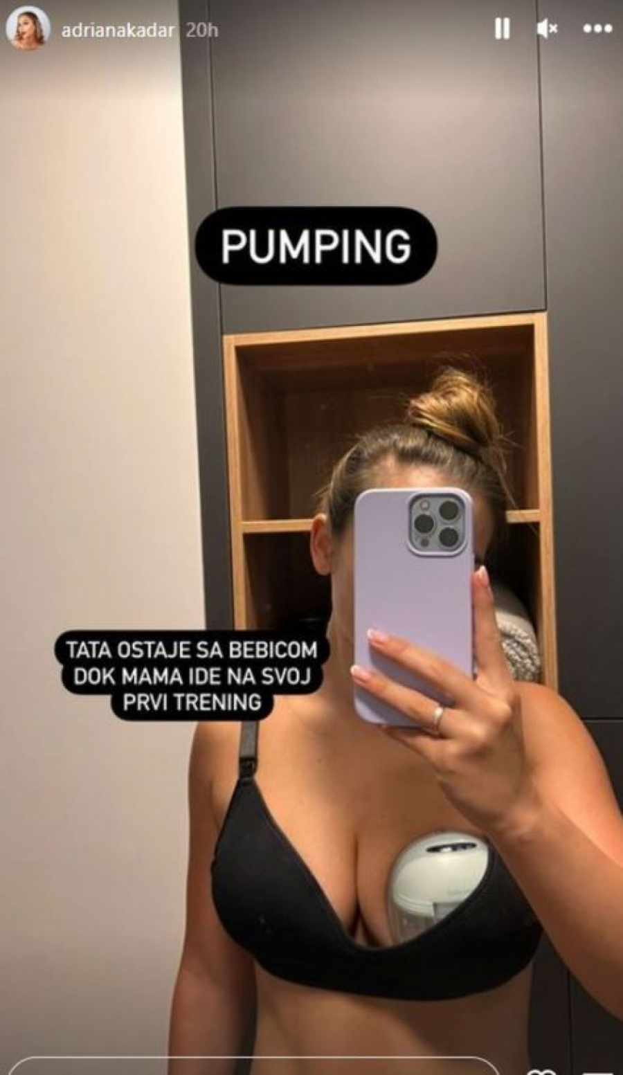 Detalj koji je raznežio mnoge pre svega majke jeste i deo koji je Adriana pokazala pre početka treninga. Naime, ona se pre teretane uslikala u svom domu, takođe u garderobi za treniranje i pokazala kako ispumpava mleko kojim doji svoju naslednicu. Ništa ne prepušta slučaju.