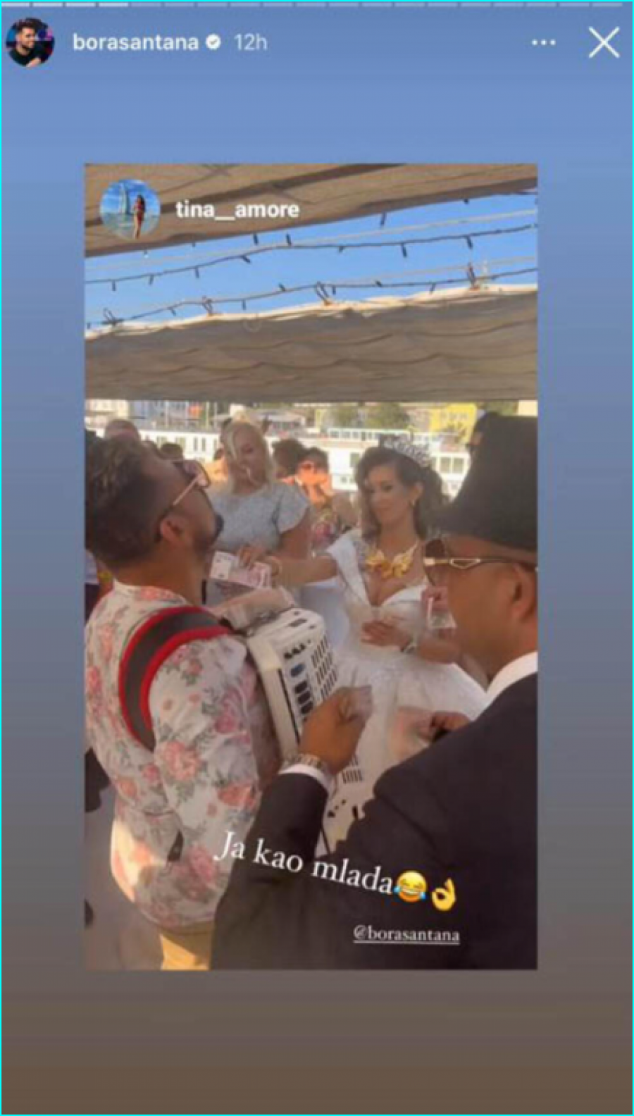 Pored dana su pevali Beki Bekić, kao orkestar Borka Radivojevića. Celi program od ujutro do zore vodio je Bora Santana, koji od završetka rijalitija Zadruga, vodi romske svadbe. I pored svoje "uloge domaćina", Santana je i zapevao i zasvirao pa je, pored svog standardnog honorara, dobro zaradio i uz bakšiš.