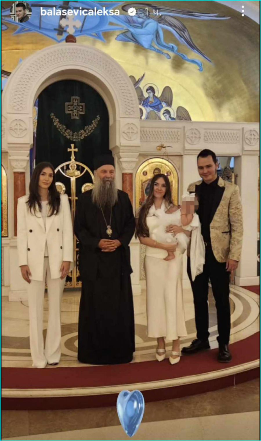 Čin krštenja obavio je patrijarh srpski Porfirije, koji je prošle godine venčao Aleksu i njegovu suprugu Nikolinu.