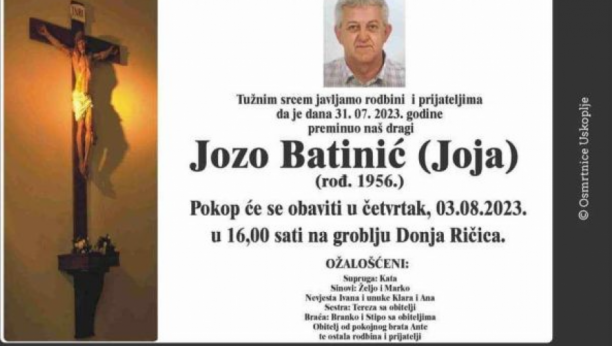 Batinić je sahranjen 3. avgusta na groblju Donja Ričica. Iza njega su ostali supruga Kata, sinovi Željo i Marko, nevesta Ivana, unuke Klara i Ana te brojna rodbina i prijatelji.