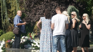 Nakon što je položila cveće, Goca je zapalila i sveću, a potom zaplakala dok su je članovi porodice tešili.