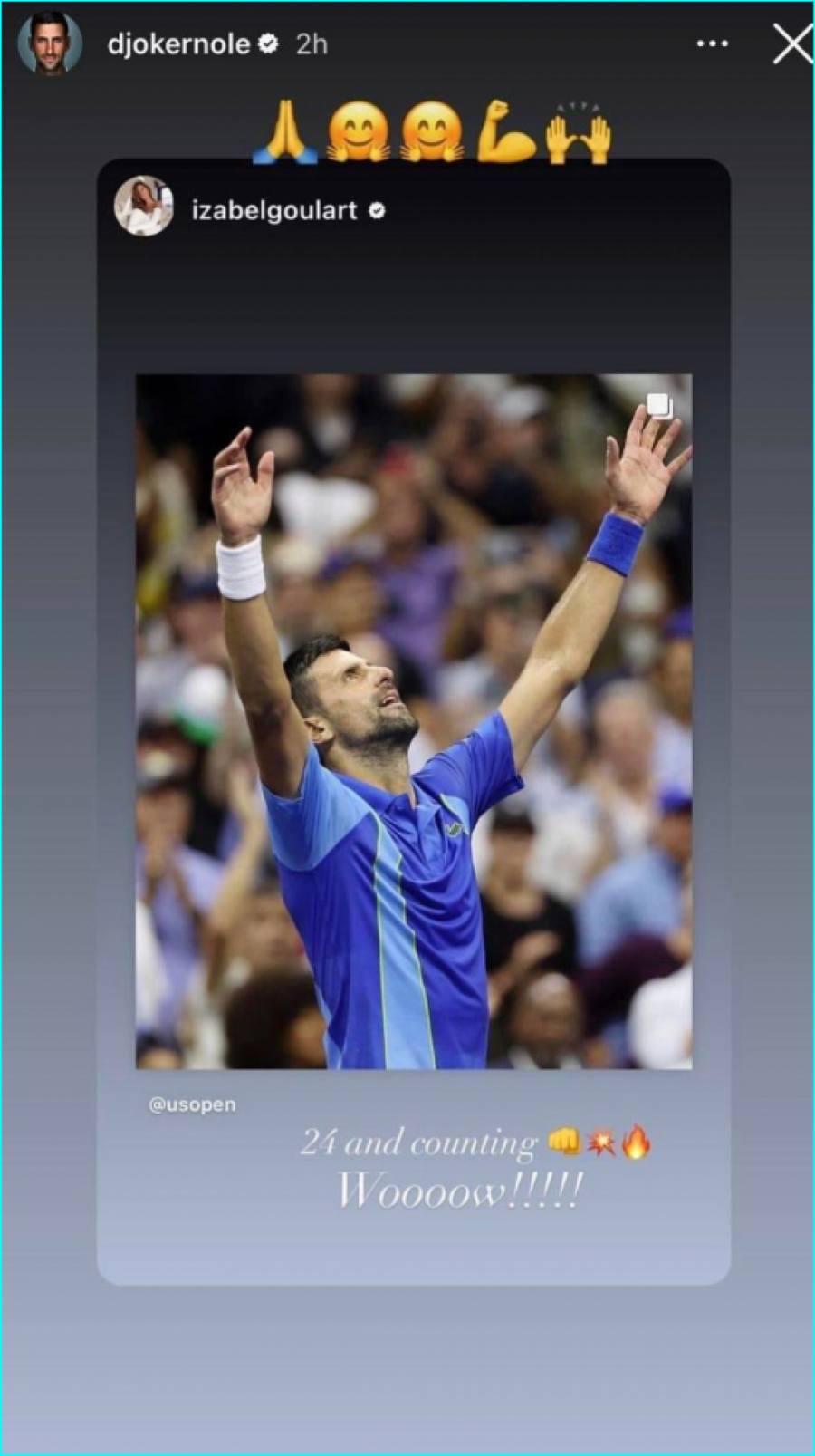 - 24 i brojaćemo dalje... Vau! - napisala je Izabel Gular na Instagram storiju, a Nole joj se srdačno zahvalio.