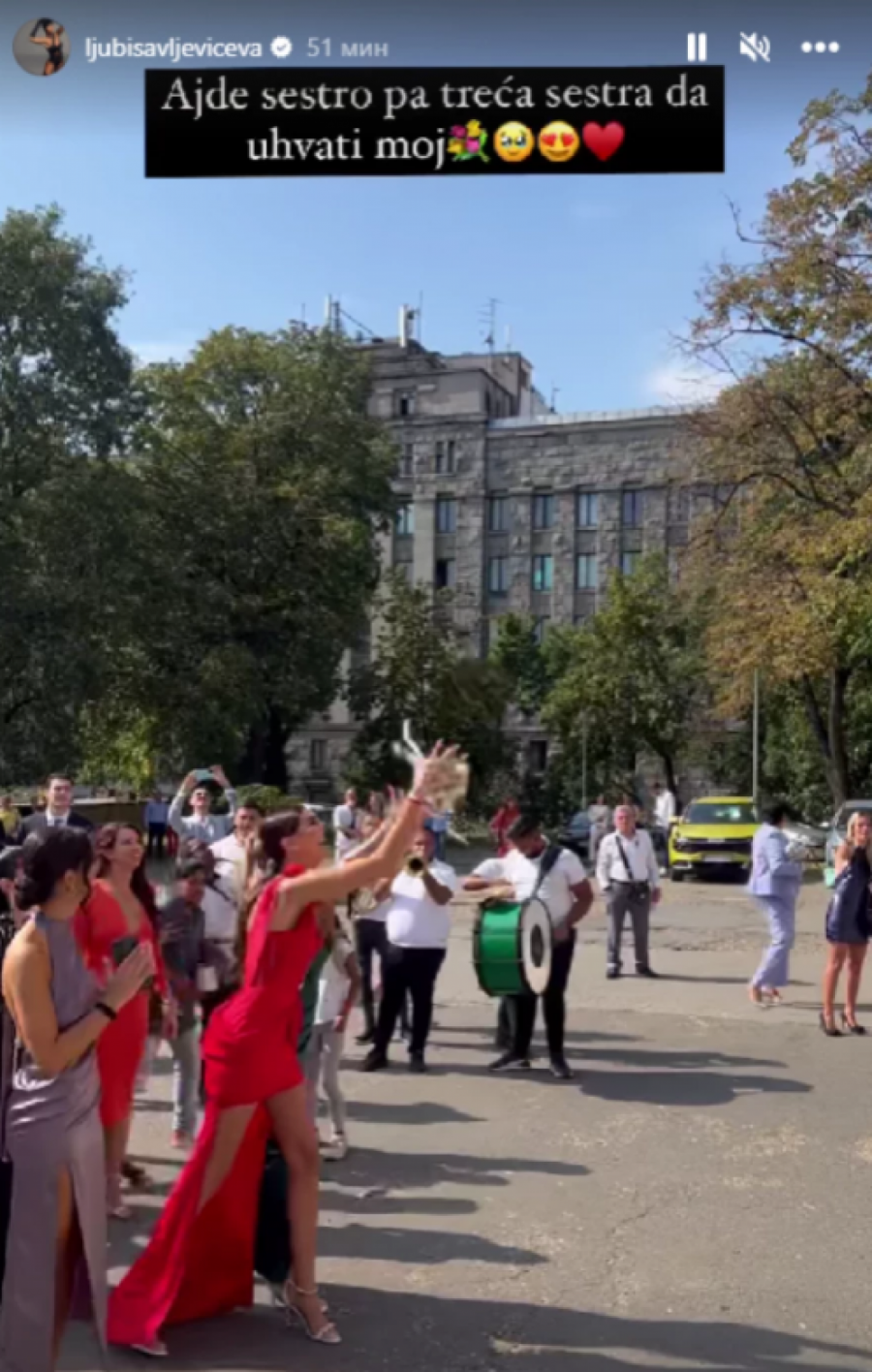 - Ajde sestro, pa treća sestra da uhvati moj - napisala je Jovana Ljubisavljević uz video-klip na kojem je uhvatila bidermajer, a onda i otišla u zagrljaj kod mlade.