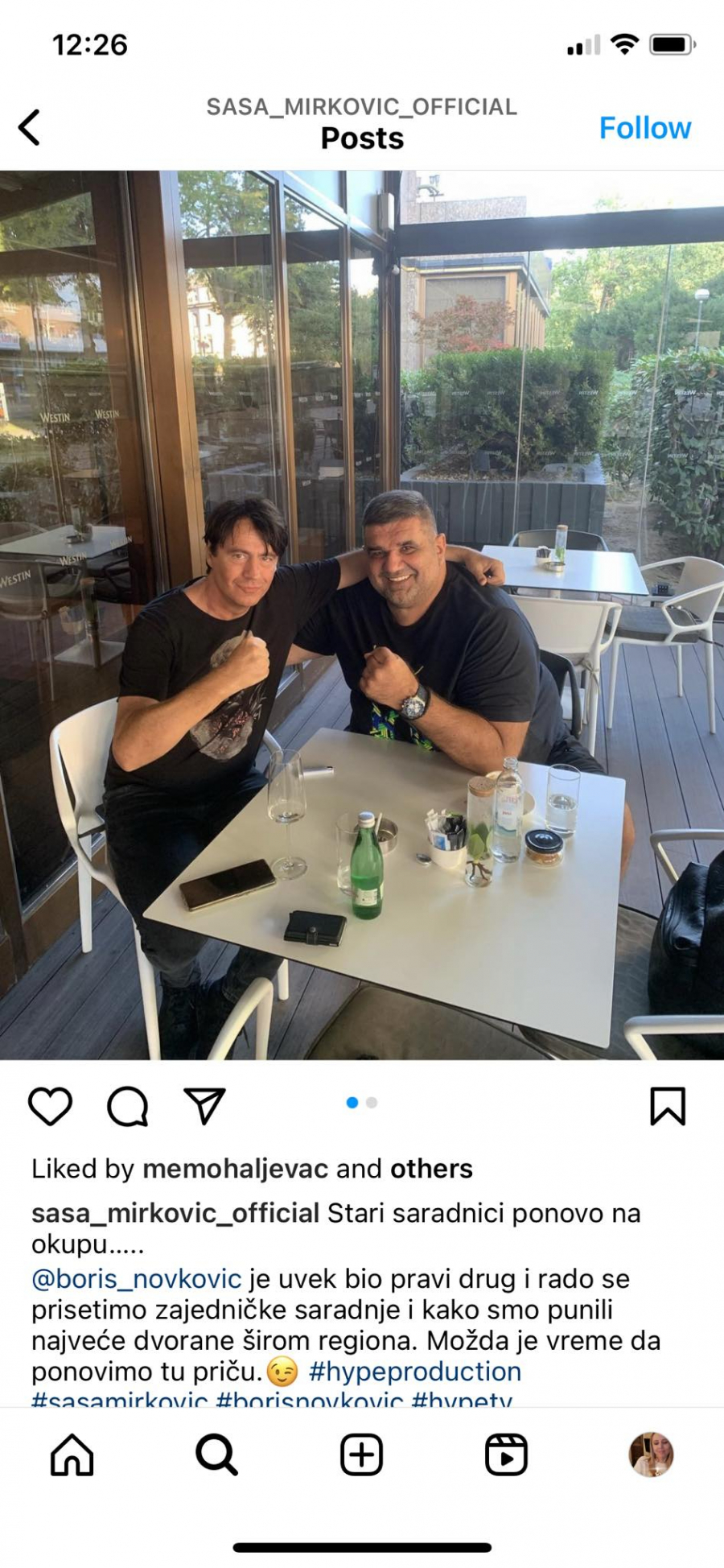 On je obnovio saradnju sa Borisom Novkovićem i organizovali su koncert u Areni, a tim povodom oglasili su se na Instagram stranici Saše Mirkovića.