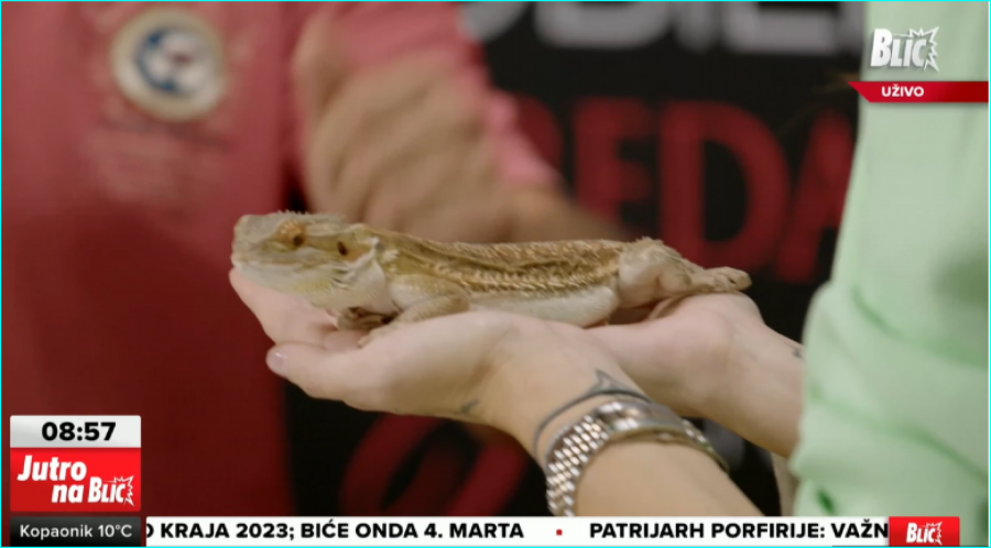 U studiju "Blic" Tv-a našla se iguana i tarantula, a voditeljki Danijeli Dimitrovskoj vidno nije bilo prijatno.