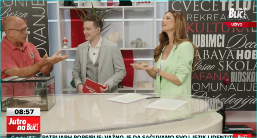 Psiholog Aleksandar Kontić i ronilac i dobar poznavalac morskog sveta i menadžer Javnog akvarijuma i tropikarijuma Branislav Jakovljević bili su gosti voditeljskog dua Ljubomira Bulajića i Danijele Dimitrovske u "Jutro na Blic" koji se emituje svakog radnog dana od 7:45, ali nisu u goste došli sami.