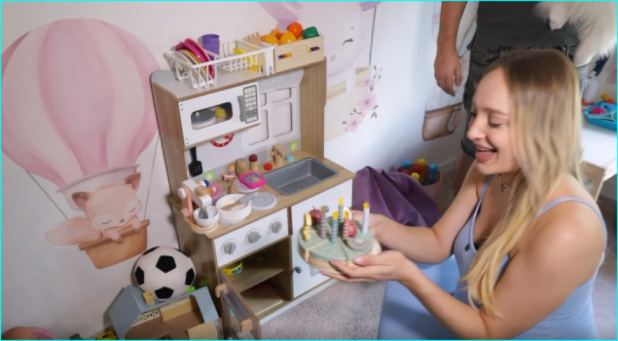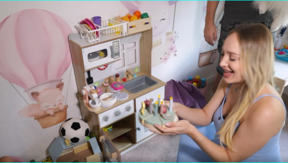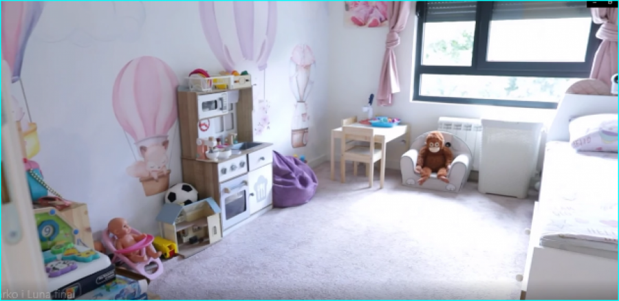 - Za sada je sve u najboljem redu. Još nas nije uhvatila panika, ali ne znači da neće za par dana - rekla je Luna, pa pokazala sobu starije ćerke Mie.- Mia ne voli da bude sama, voli društvo da se neko igra sa njom. Beba Lana neće odmah deliti sa Miom sobu. Njoj je potreban samo krevetac. Kada ih budemo preselili u njihovu zajedničku sobu, tada ćemo malo i promeniti prostoriju. da to bude soba za dve devojčice. Mia najviše voli da se igra sa sudićima. Tu sprema tortu.