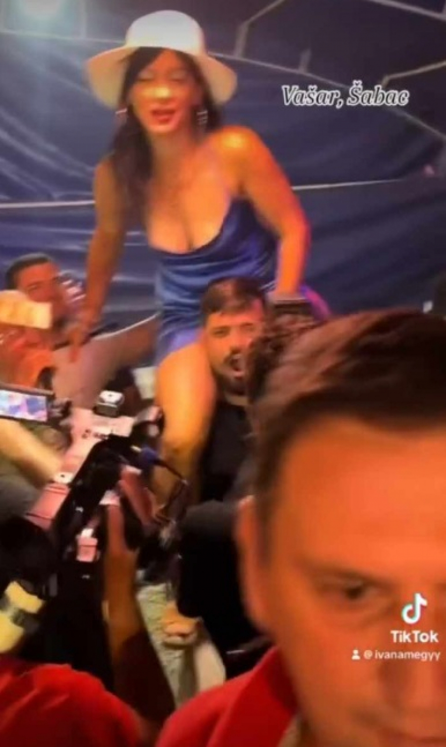 Vendi je na sebi imala kratku, plavu haljinu od satena, bez brushaltera, a u jednom trenutku je šok svih zajahala Boru Santanu dok je Era pevao.