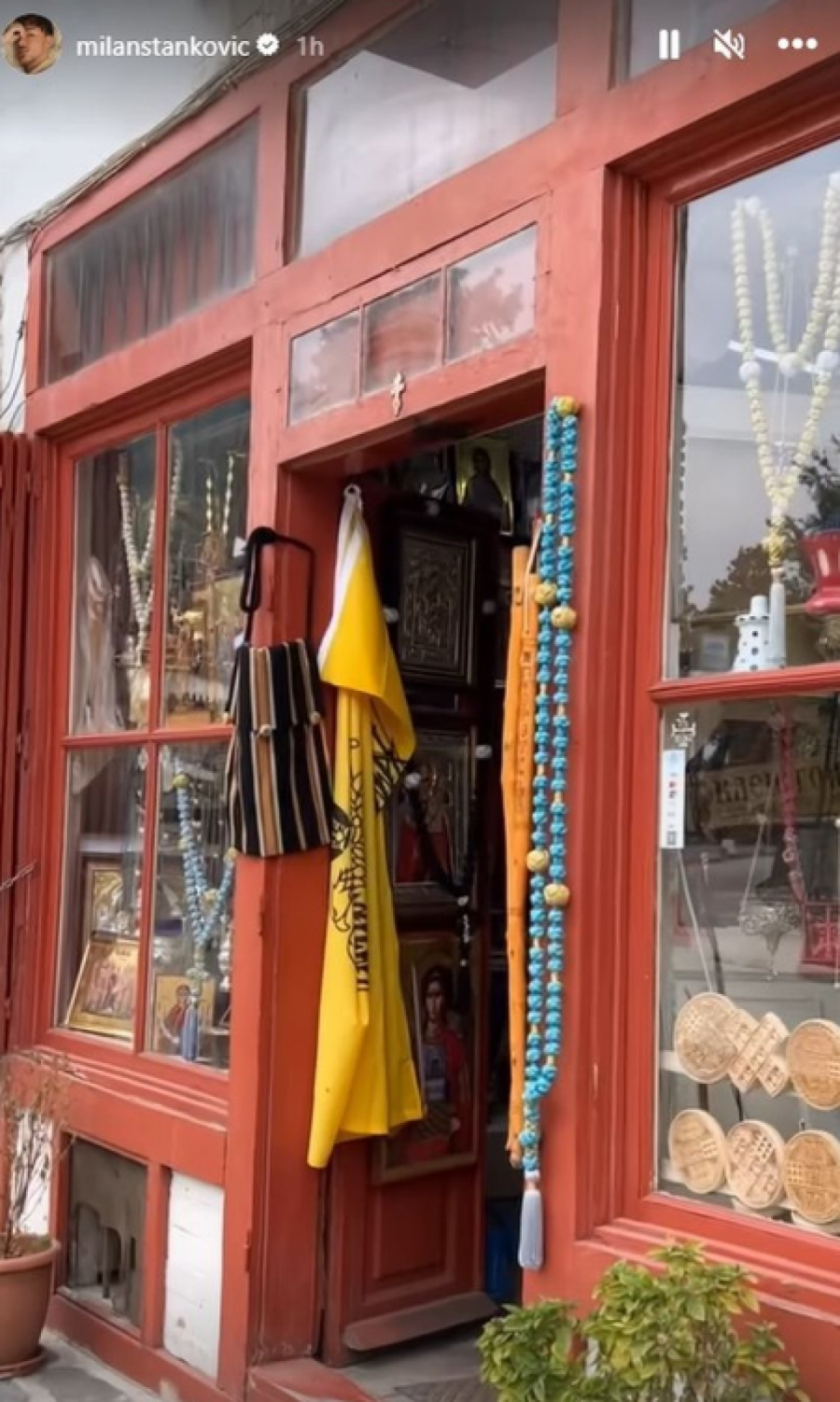 Milan je snimao manastirsku prodavnicu sa ikonama i brojanicama, a onda i monaha koji je tu prolazio.