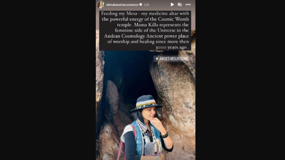 Elena Karaman, ćerka kreatorke Verice Raković, trenutno je na putovanju u Peruu, a na svom Instagramu redovno deli snimke i fotografije drevnih rituala koje obavlja.