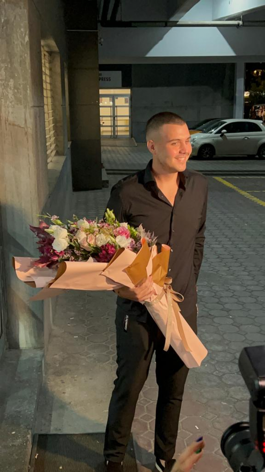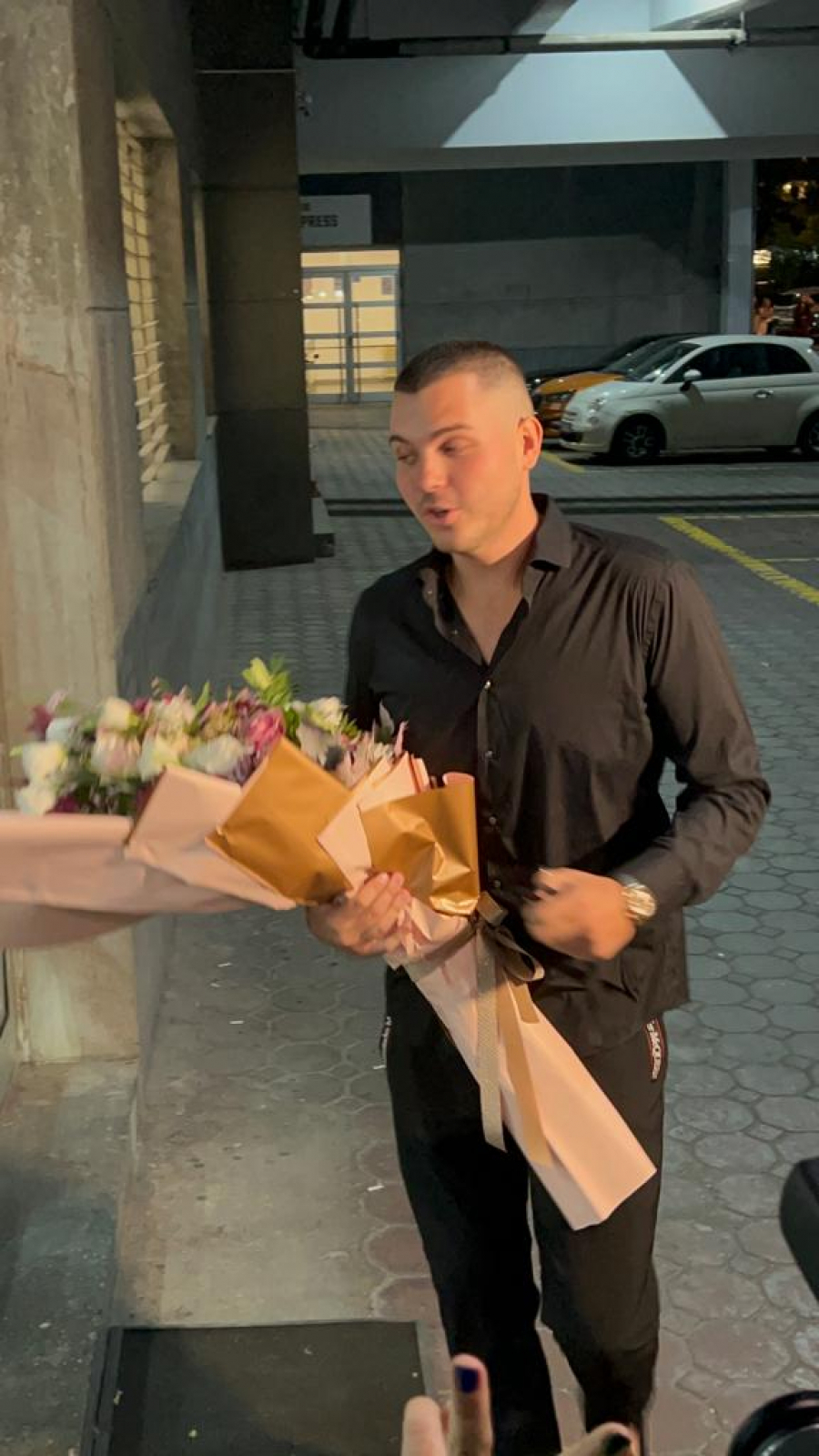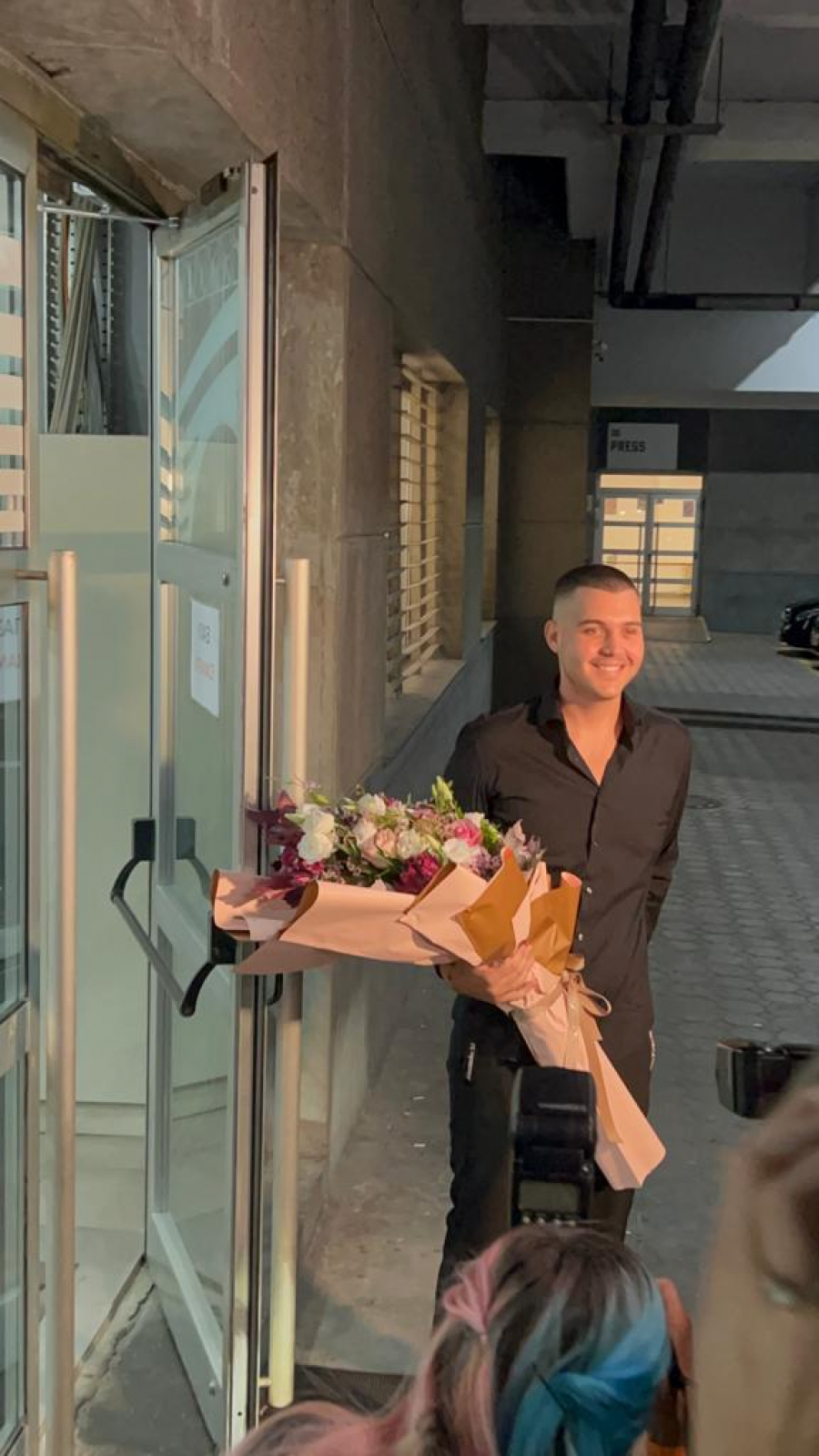 Šarmantni Viktor je nosio ogroman buket cveća koji će dati snajki i čestitati joj na velikom uspehu, te na kraju dodao da ima "najjaču" snajku na svetu.