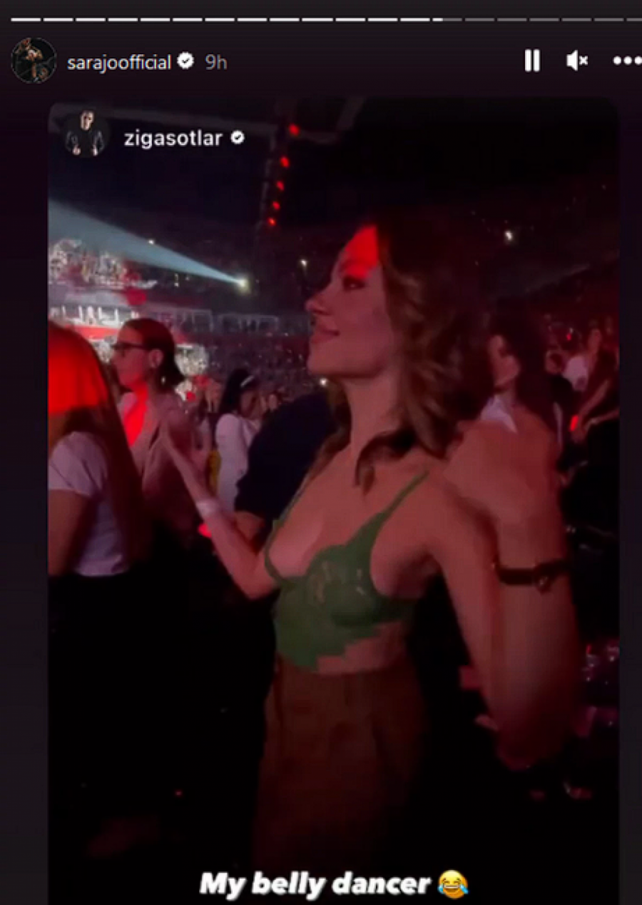 Sara je za ovu priliku nosila zeleni čipkasti top koji je više otkrivao nego pokrivao, a pažnju je privukla kada je počela da igra.