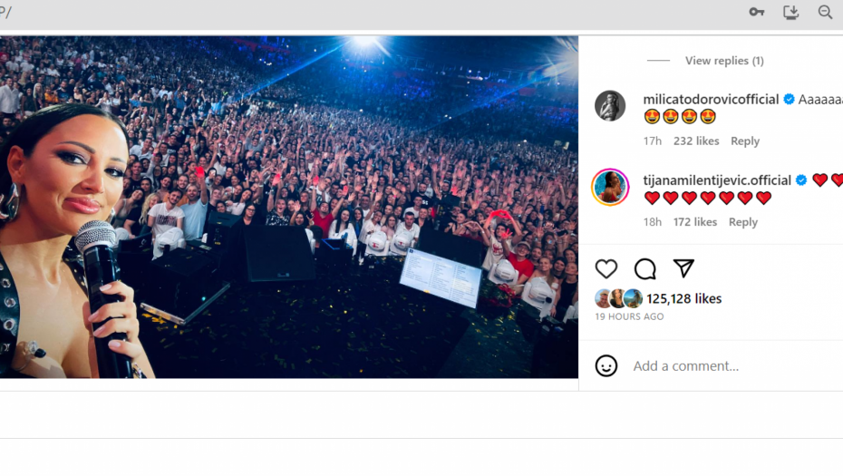Sada je na njenom Instagram profilu objavljena fotografija, na kojoj se može videti Aleksandra koja pozira, dok je iza nje mnogobrojna publika, a u komentarima su se samo ređale čestitke i ovacije poznatih ličnosti među kojima su Dušica Jakovljević, Nikola Rokvić, Tijana Milentijević, Milica Pavlović, Dragica Zlatić, Džejla Ramović i mnogi drugi.