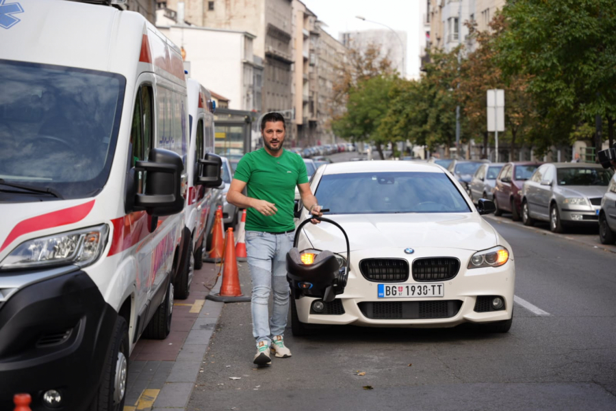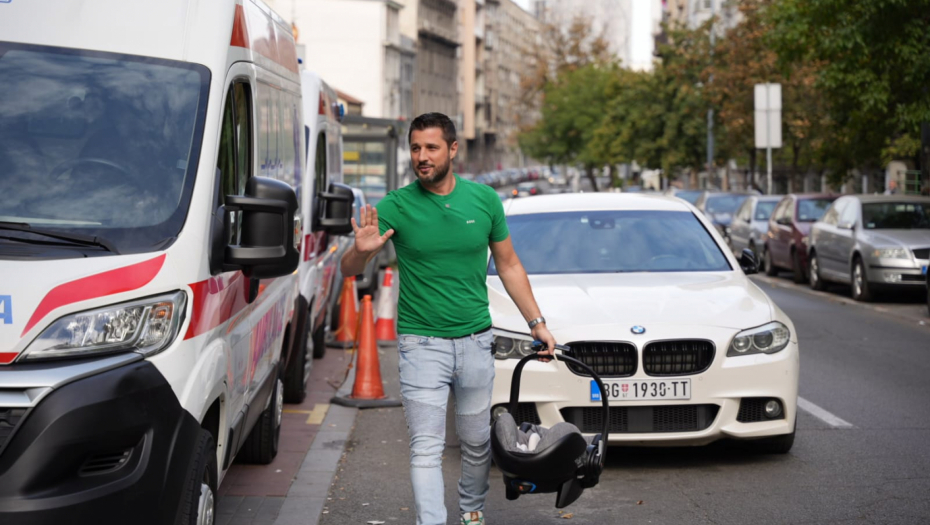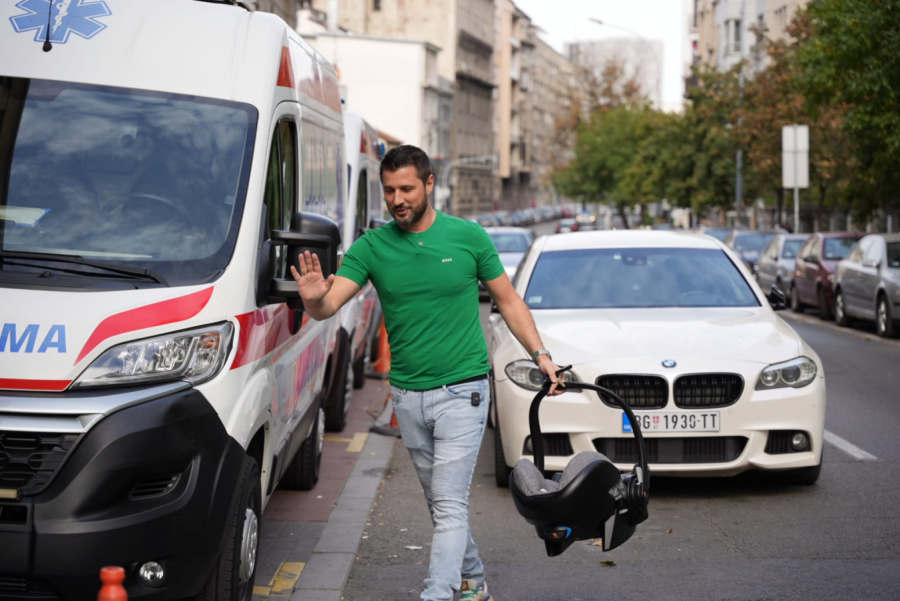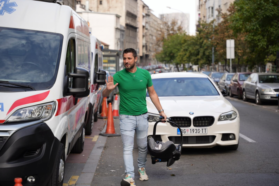 Naime, ponosni tata Marko Miljović stigao je na vreme u porodilište Narodni front po svoje princeze, presrećan, a osmeh nije skidao sa lica.