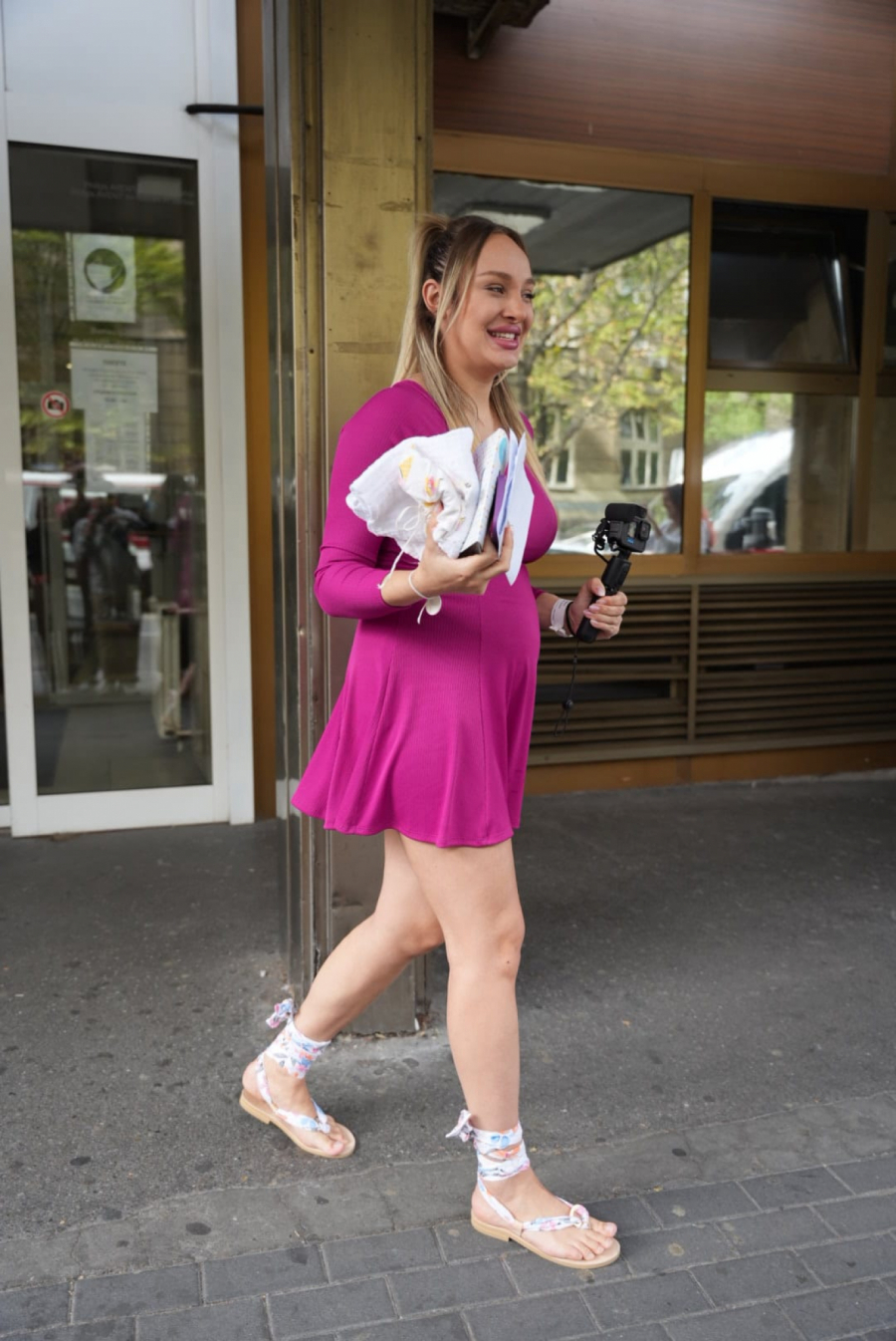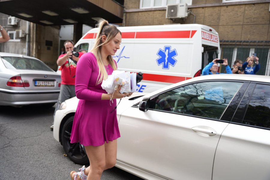 Po Lunu je došao njen suprug Marko, koji je odmah po dolasku prvo izneo njene stvari, kofer, doneo nosiljku, a onda je par izašao iz porodilišta.
