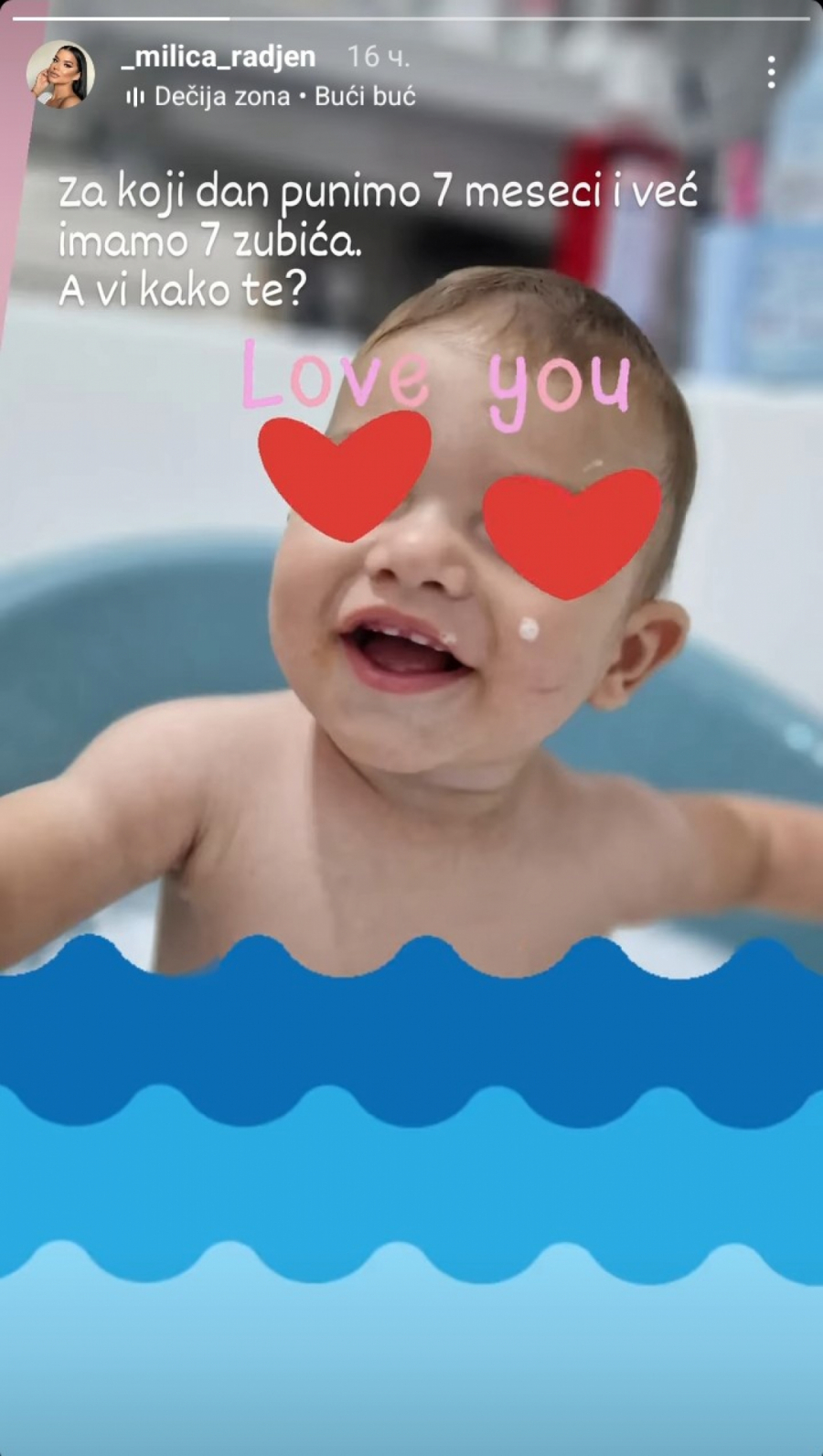 Njih dvoje nisu do sada želeli da pokazuju bebu na mrežama i u medijima, međutim, ponosna mama ipak nije mogla da odoli, pa je objavila fotku svog jedinca dok je uživao brčkajući se u koritu.