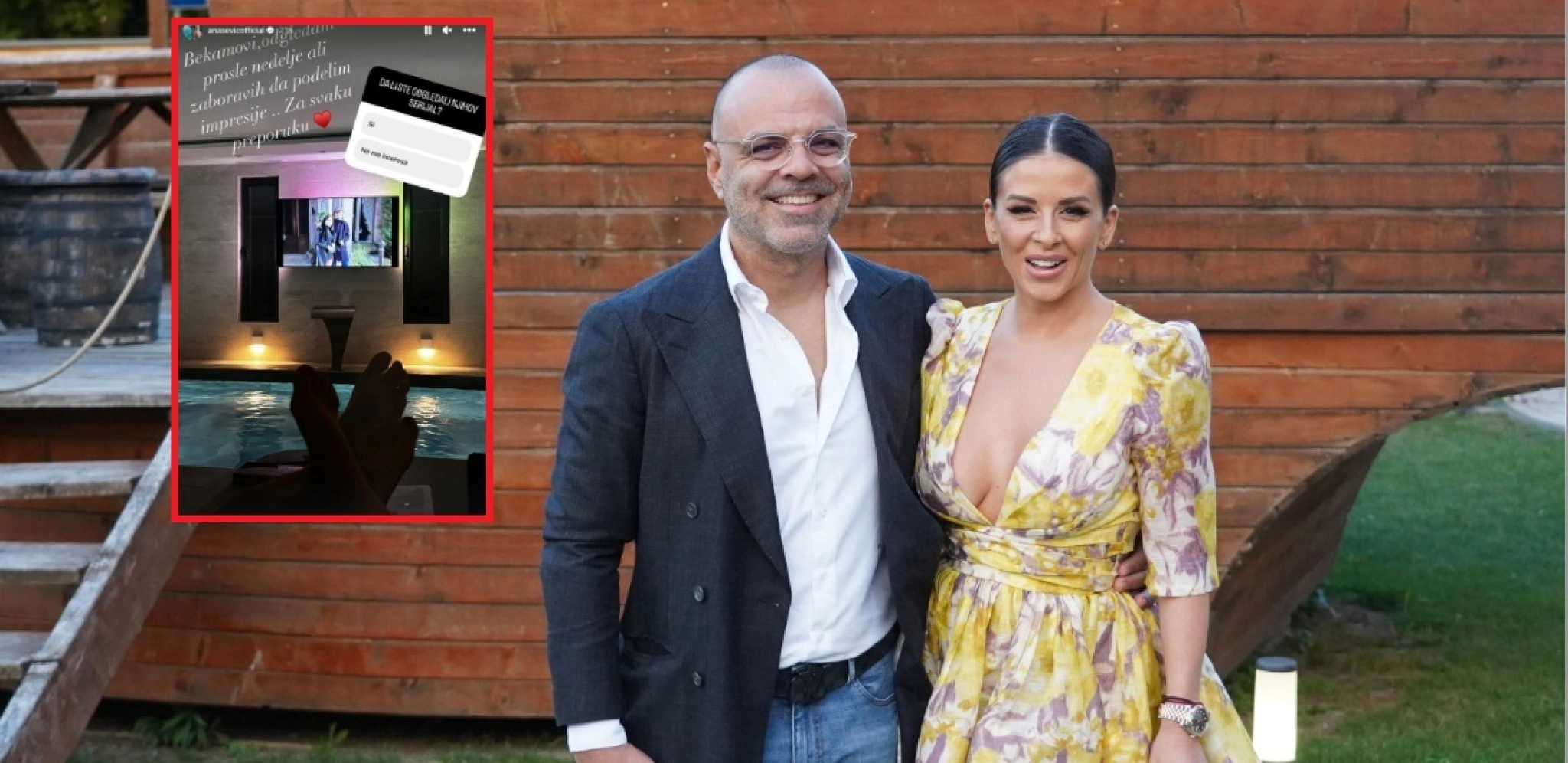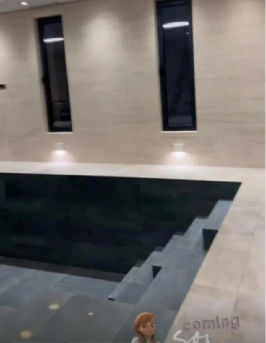 Naime, ona je pokazala kako izgleda završen bazen napunjen vodom, a celokupni užitak upotpunili su tako što su stavili i televizor u istoj prostoriji. Ana je gledala dokumentarac o Bekamovima i sa svojim pratiocima podelila deo moćne atmosfere iz svog stana.