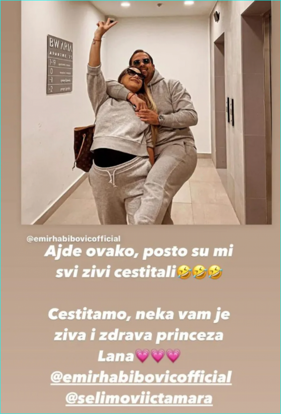Lepu vest da je Tamara Selimović, supruga njenog prijatelja i kolege Emira Habibovića, danas donela na svet devojčicu, Nadica je podelila na svom Instagram storiju.