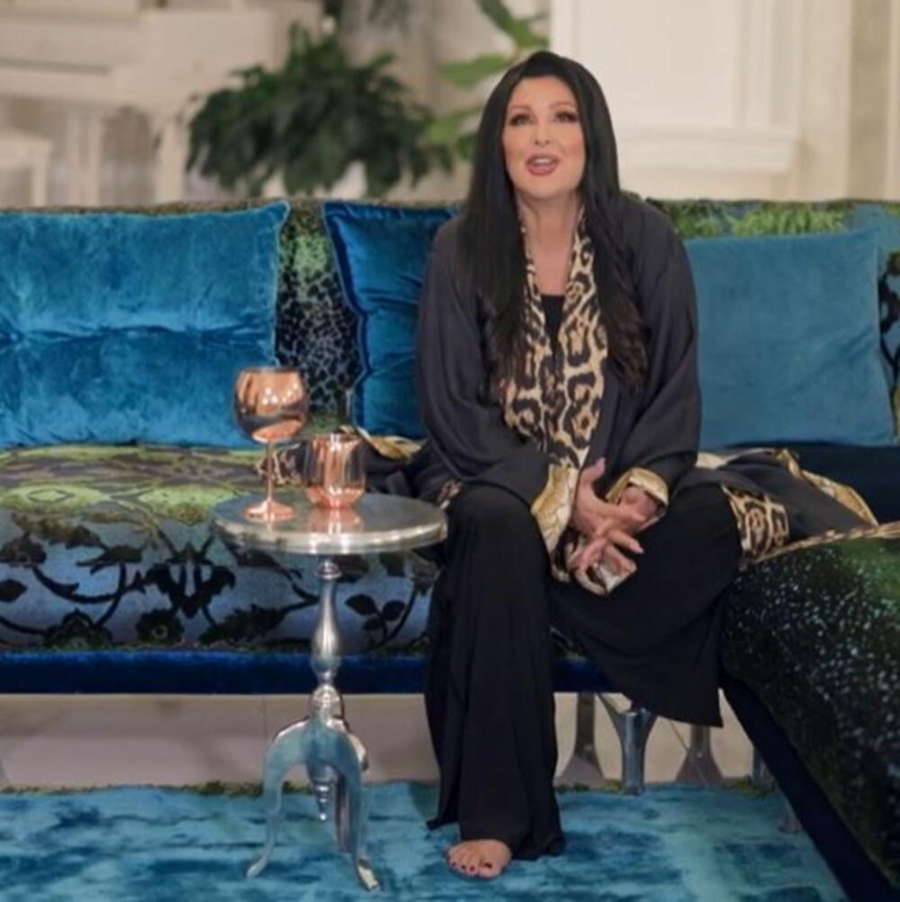 Pevačica je sedela u dnevnoj sobi velelepnog dvorca u svilenom setu za spavanje sa animal printom i zablistala u kućnoj varijanti.