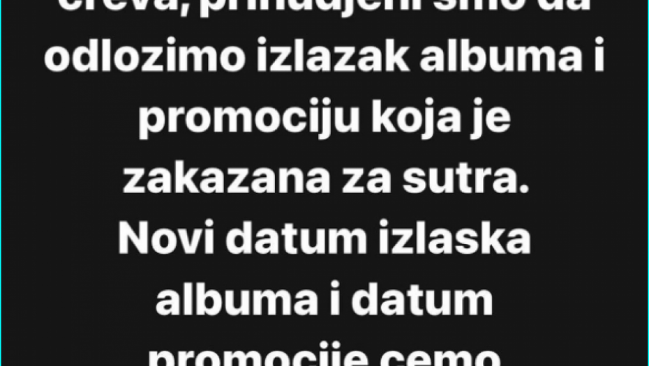- Novi datum izlaska albuma i datum promocije ćemo blagovremeno obavestiti. Hvala na razumevanju - dodao je Polumenta.