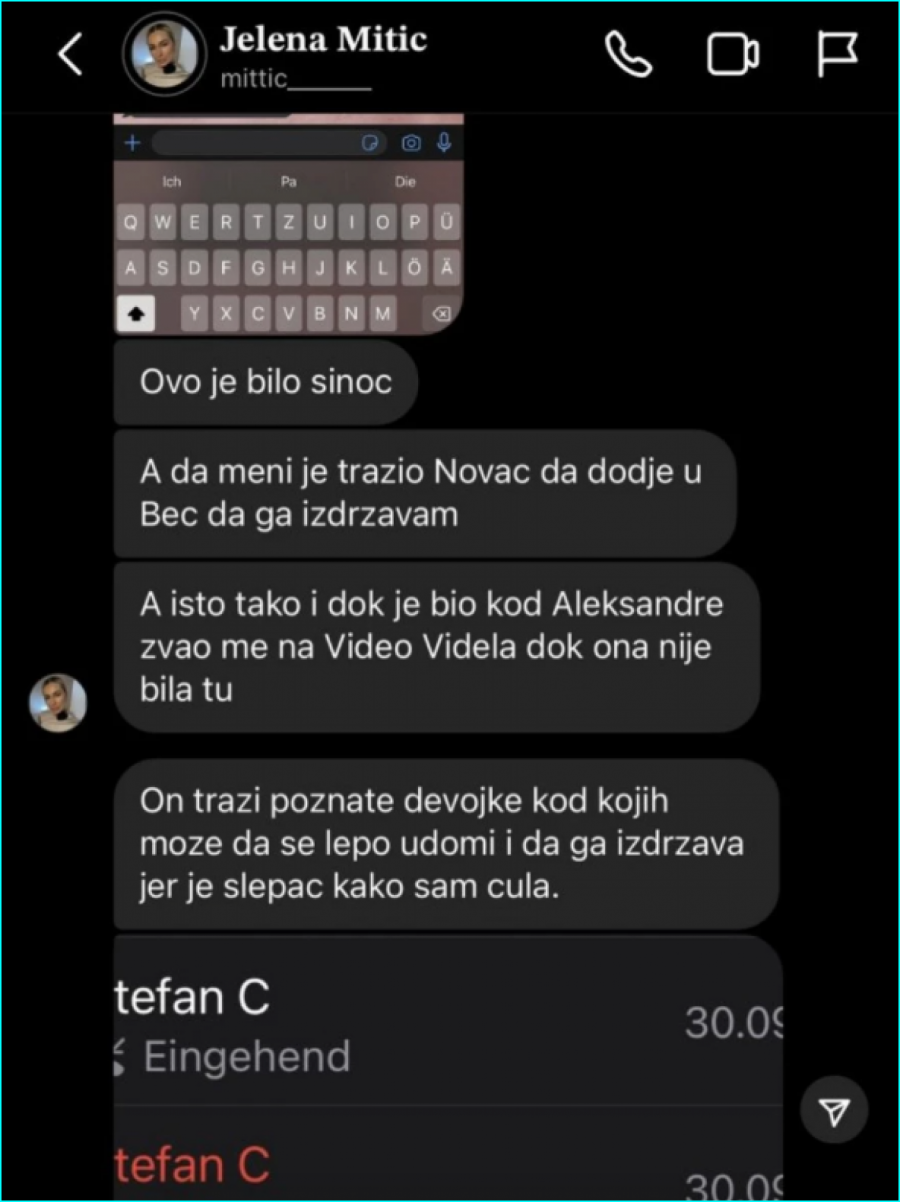 Nakon što je pravio haos bivšoj devojci, o Stefanu su krenula da se pojavljuju razne tvrdnje. Sada je bivša zadrugarka Jelena Mitić objavila prepiske sa Stefanom u kojima navodi da je želeo da ide kod nje u Beč i da je zvao dok je boravio u Aleksandrinom stanu.