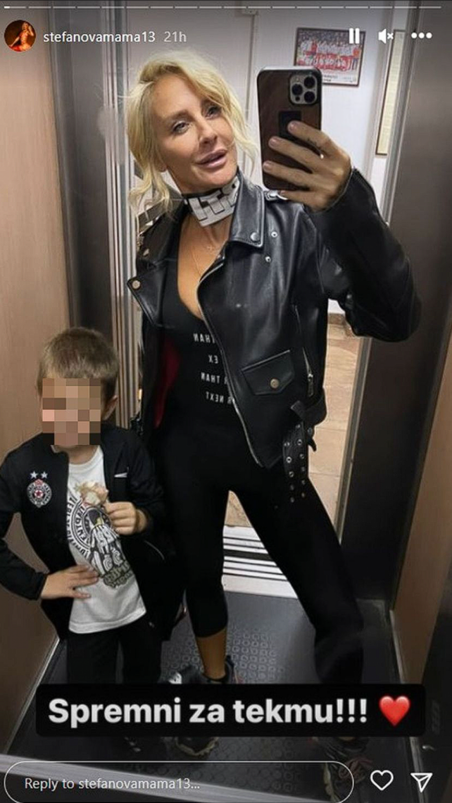 Ona je kao podrška crno belima došla u pratnji svog sina Stefana, a objavila je i nekoliko fotki i snimaka na društvene mreže.
