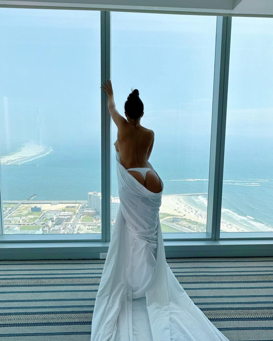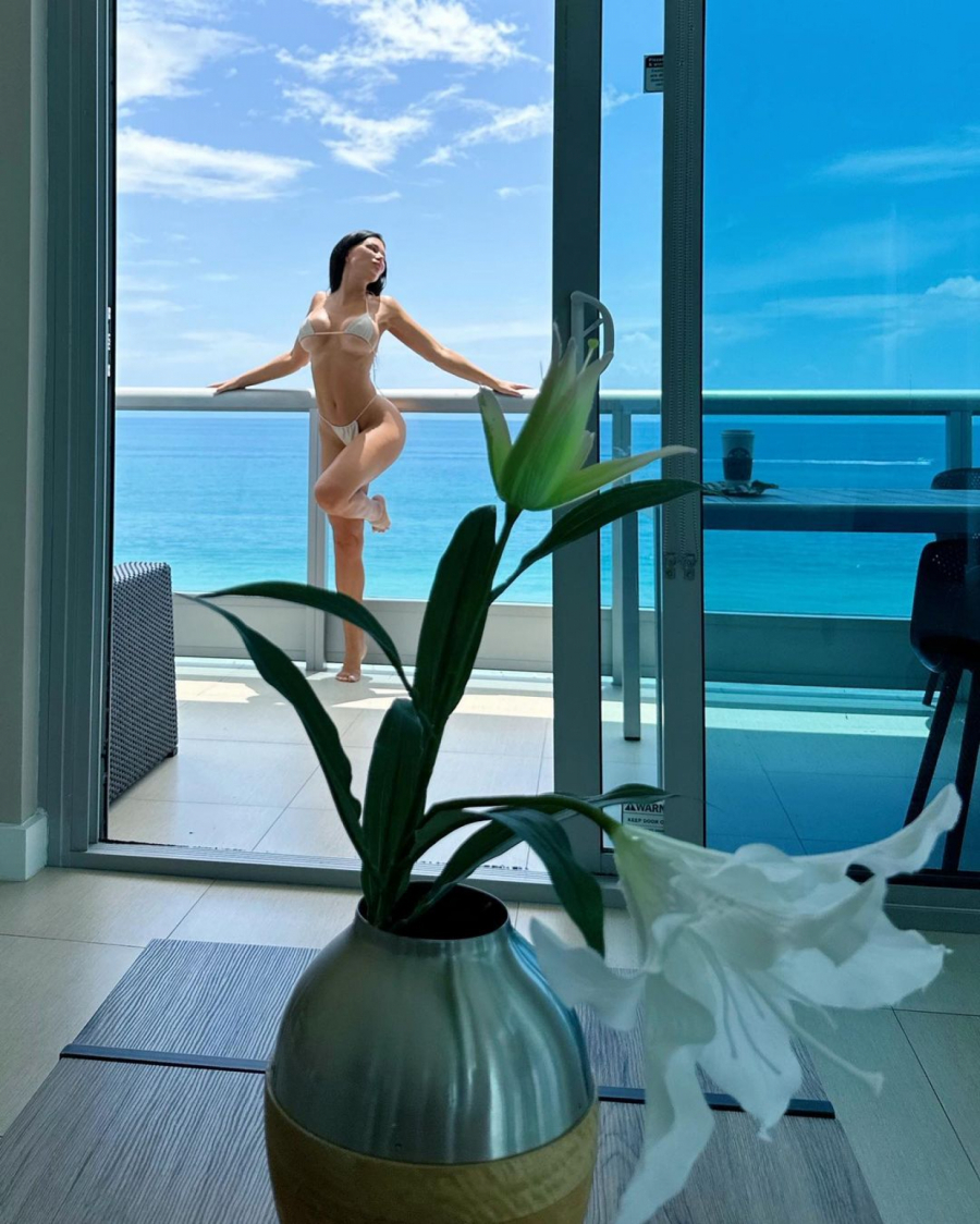 Naime, nakon serije fotografija na kojima je diskretno uvijena u platno i majstorski otkriva samo pomalo sve svoje adute, Stanija se ipak odlučila na malo eksplicitniju varijantu, pa je objavila i fotke maltene kao od majke rođena - samo u tangicama bele boje dok joj je pogled iz stana pucao na okean.
