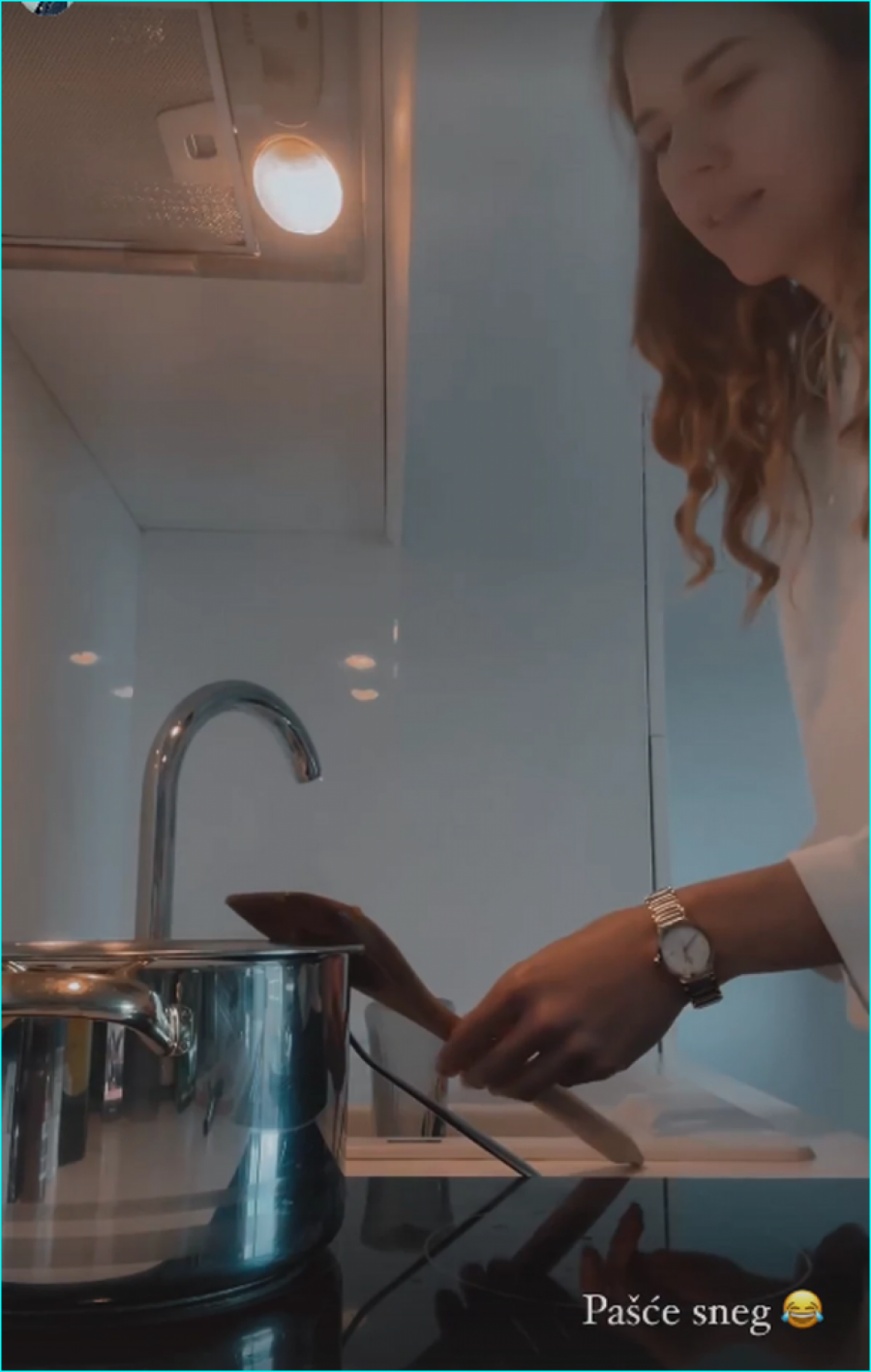 - Pašće sneg - napisala je Anica u opisu snimka, a mnogi su primetili da je ručak spremala u belo košulji i sa satom na ruci.