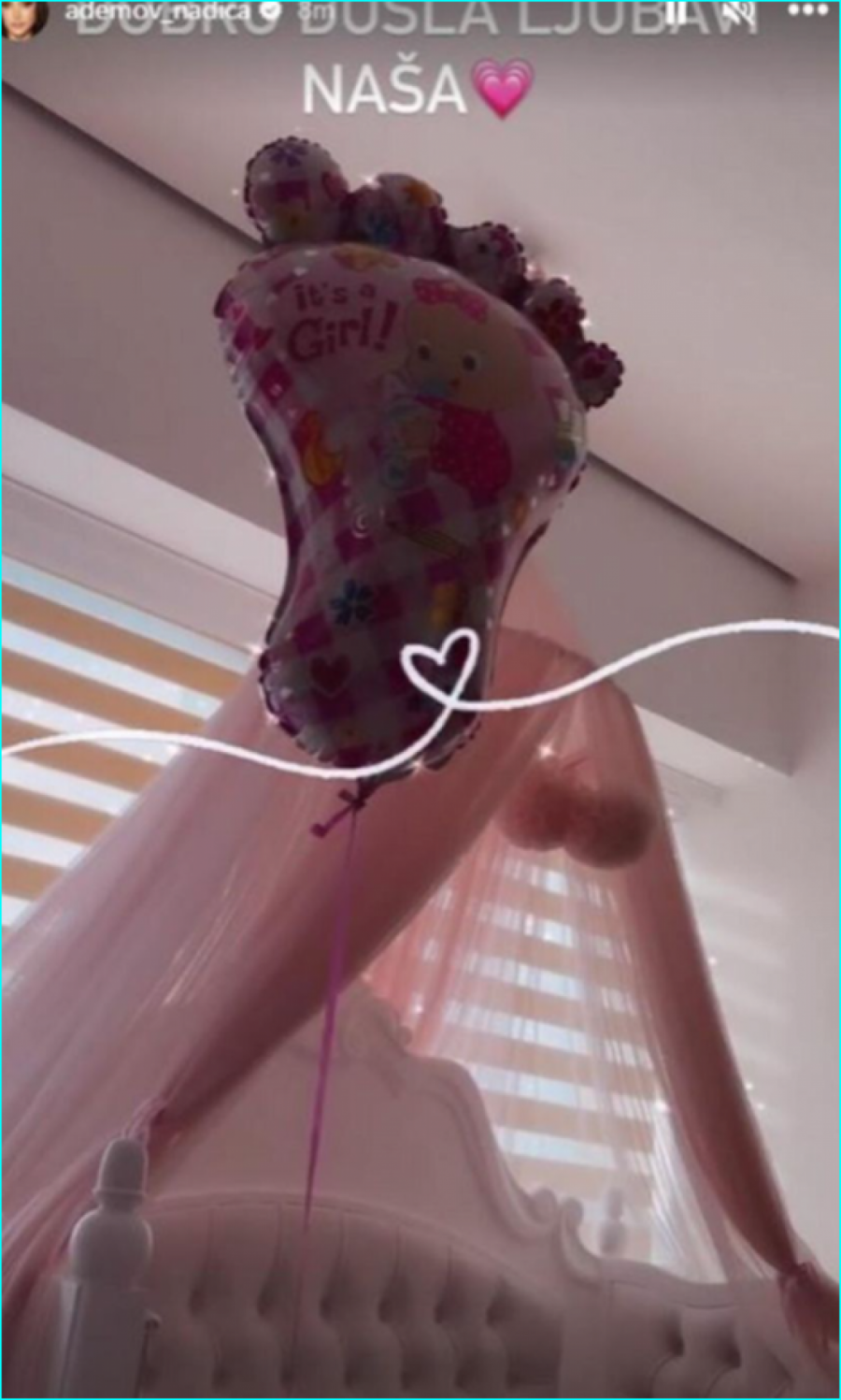 Nadica je, zajedno sa svojim partnerom milionerom posebno opremila sobu za njihovu naslednicu, pa možemo videti krevetić kao iz bajke, sa belim ramom i roze baldahinom.