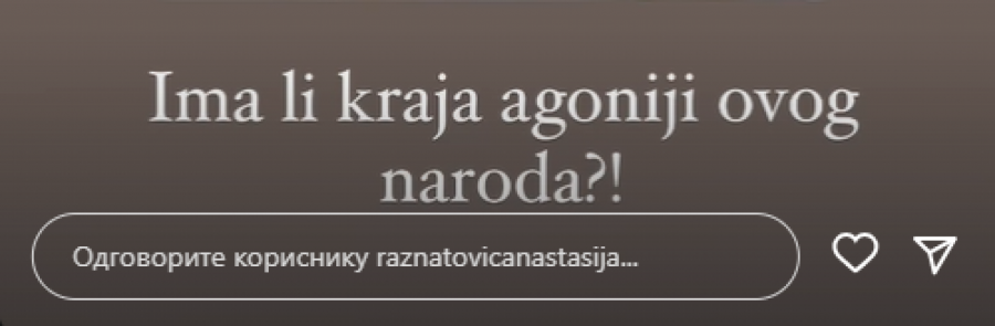- Ima li kraja agoniji ovog naroda?! - napisala je Anastasija vidno uznemirena zbog trenutne situacije.