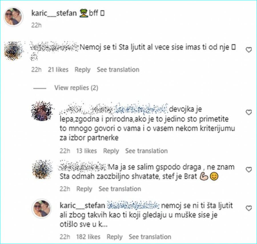 Međutim, među brojnim pozitivnim komentarima našle su se i neke prozivke, a jedan pratilac je na prost način pokušao da uvredi Andreu, ali i Stefana.