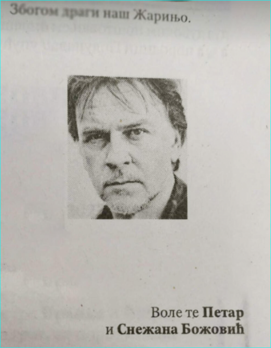 - Zbogom dragi naš Žarinjo. Vole te Petar i Snežana Božović - stoji u čitulji.