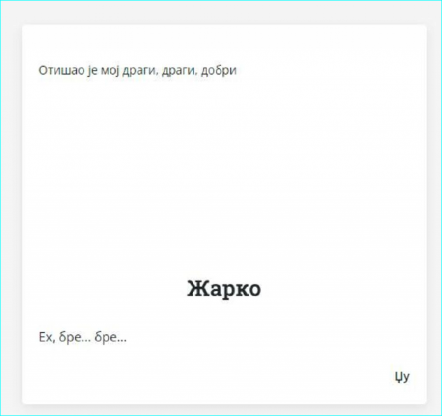 - Otišao je moj dragi, dragi, dobri Žarko. Eh, bre... bre... - a u potpisu stoji Džu.