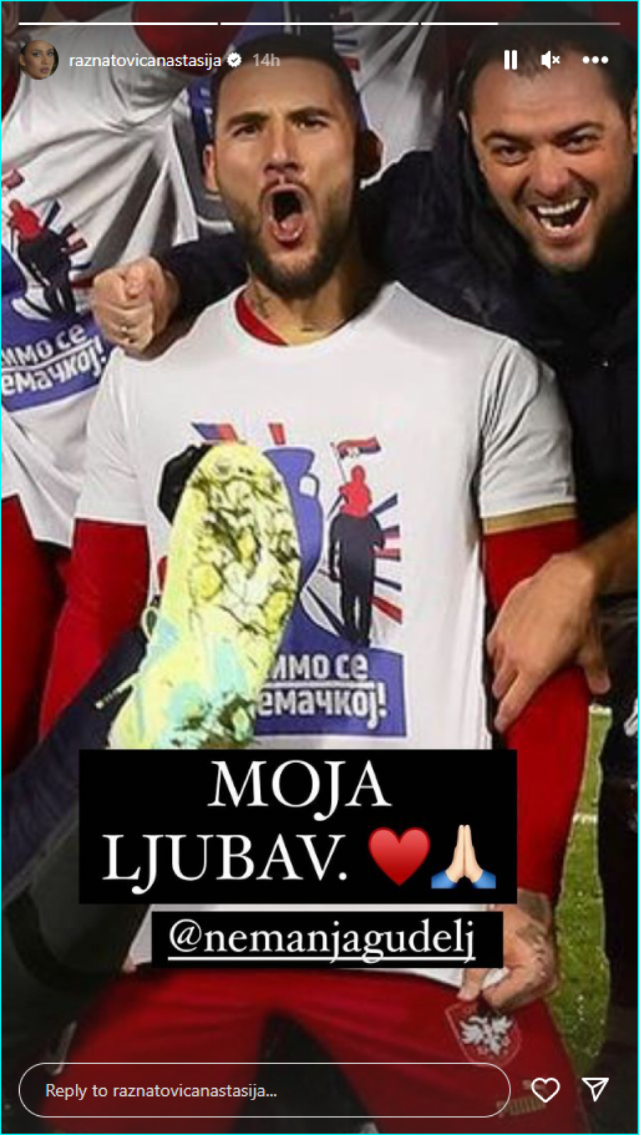Pevačica Anastasija Ražnatović redovno prati fudbalska dešavanja, naročito od kad je u ljubavi sa fudbalerom Nemanjom Gudeljem. Podrška mu je gotovo na svakoj utakmici, a juče se posebno obradovala zbog uspeha naših fudbalera čiju je utakmicu napeto pratila.