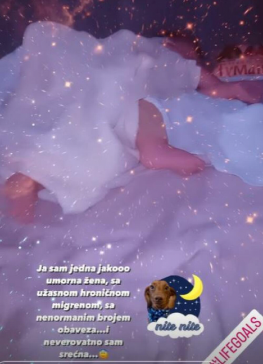 - Ja sam jedna jako umorna žena sa užasnom hroničnom migrenom, sa nenormalnim brojem obaveza... I neverovatno sam srećna - napisala je Slobina žena.