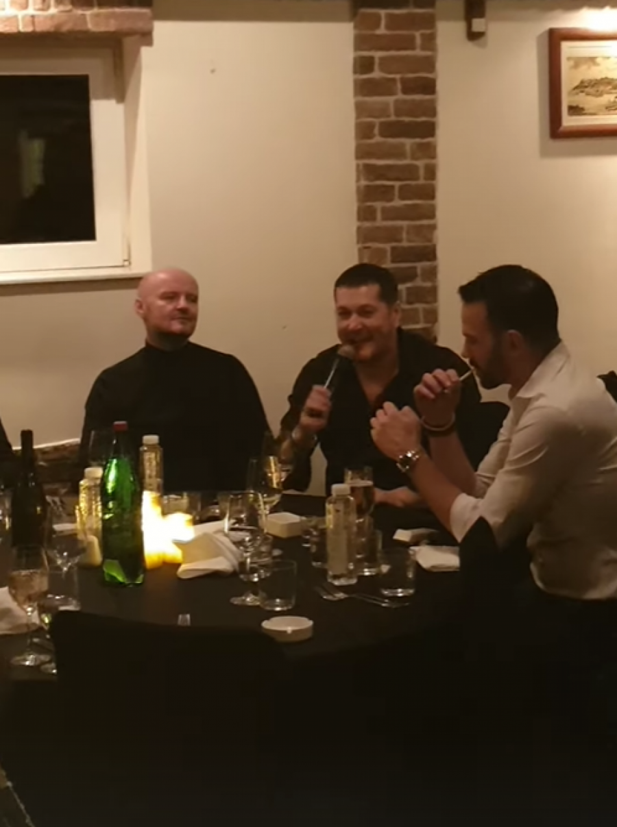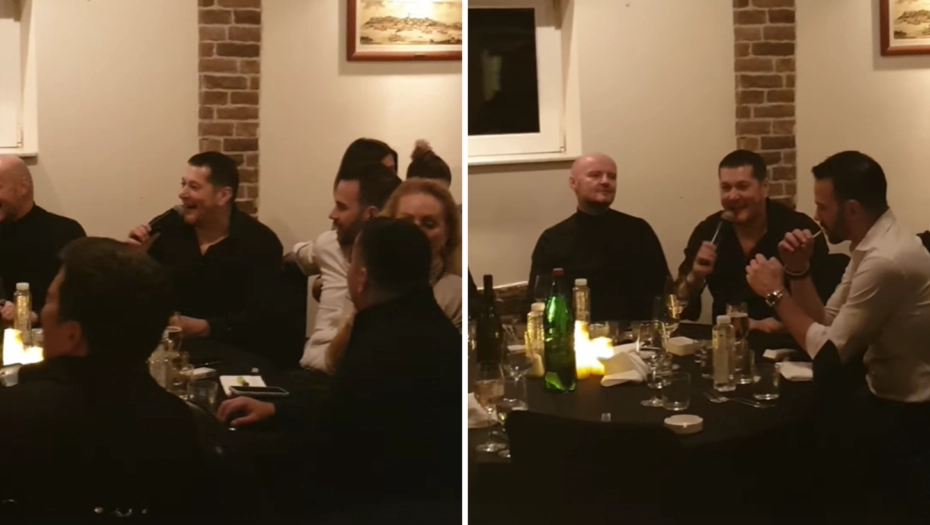 Filip je uživao bez supruge Aleksandre, koja se verovatno sprema za predstojeće koncerte u Zagrebu, a među zvanicama našao se i pevač Aco Pejović, koji se u jednom trenutku latio i mikrofona.