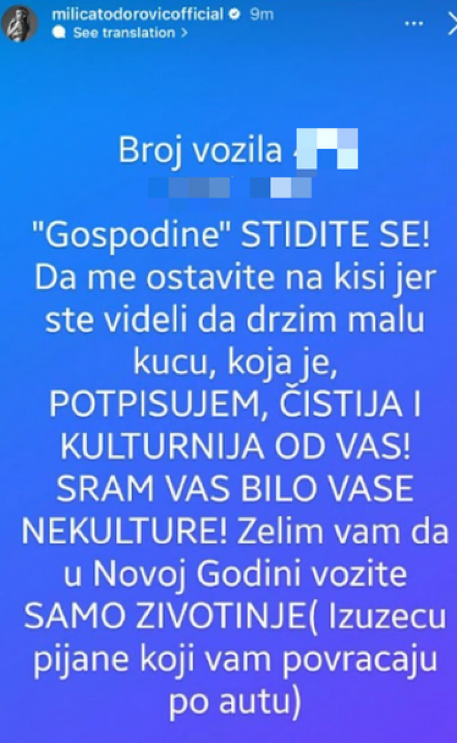 Pevačica Milica Todorović na svom Instagram profilu podelila je dramu koju je doživela u jednom taksiju.