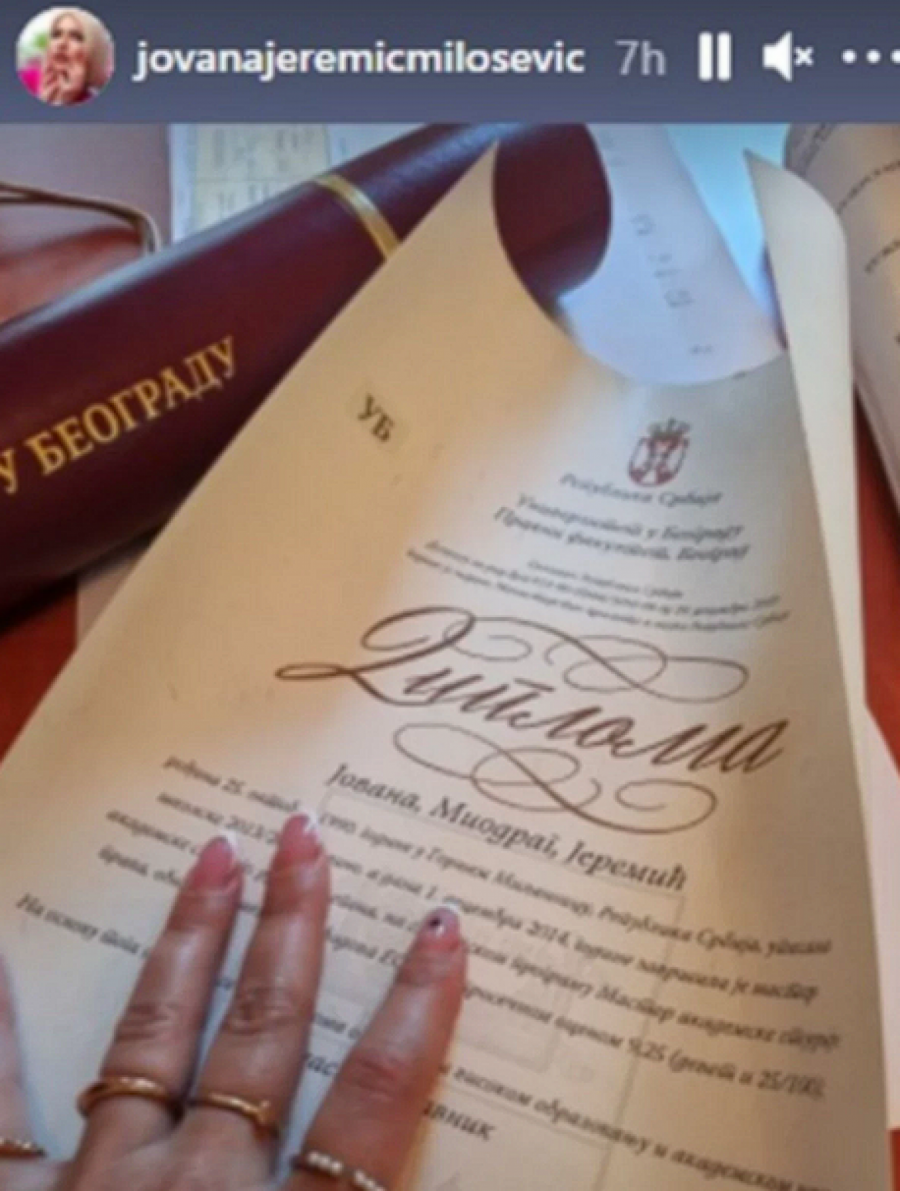 Naime, ona je sada odlučila da iznenadi svoje pratioce i da pokaže diplomu sa osnovnih i master studija na Pravnom fakultetu univerziteta u Beogradu, a prosek joj je bio i te kako dobar.