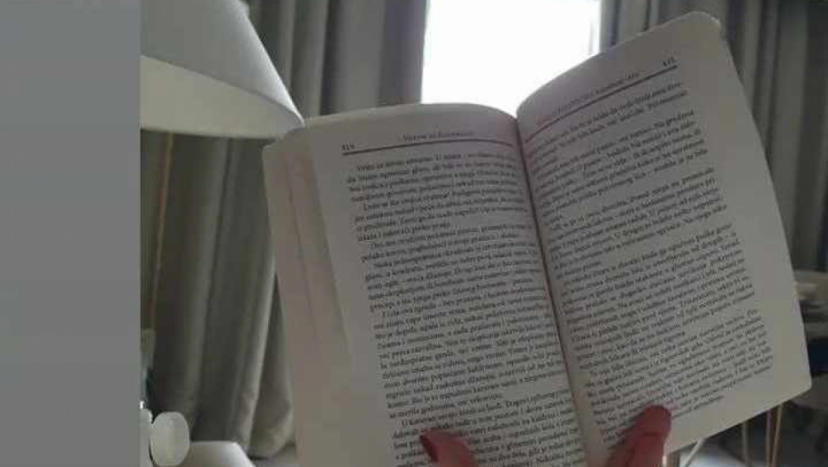 Ona je svoje pratioce pitala da joj daju predlog za čitanje neke knjige kako bi joj vreme do porođaja što pre stigao.