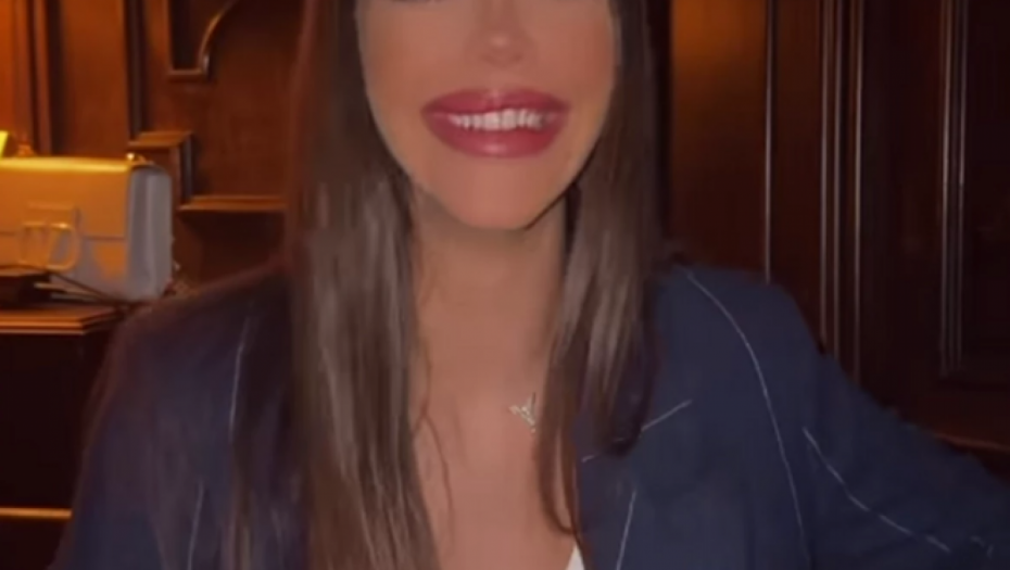 Bogdana je na sebi imala karirani sako i belu majicu, isfeniranu kosu je pustila, stavila je crveni karmin i osmeh nije skidala.