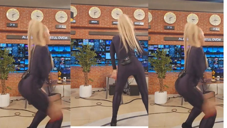 Voditeljka je obukla crni, uski kombinezon koji je jasno ocrtao sve njene atribute, a potom se savila, rukom delimično sakrila vreli dekolte, uključila kameru, i napravila spektakl.